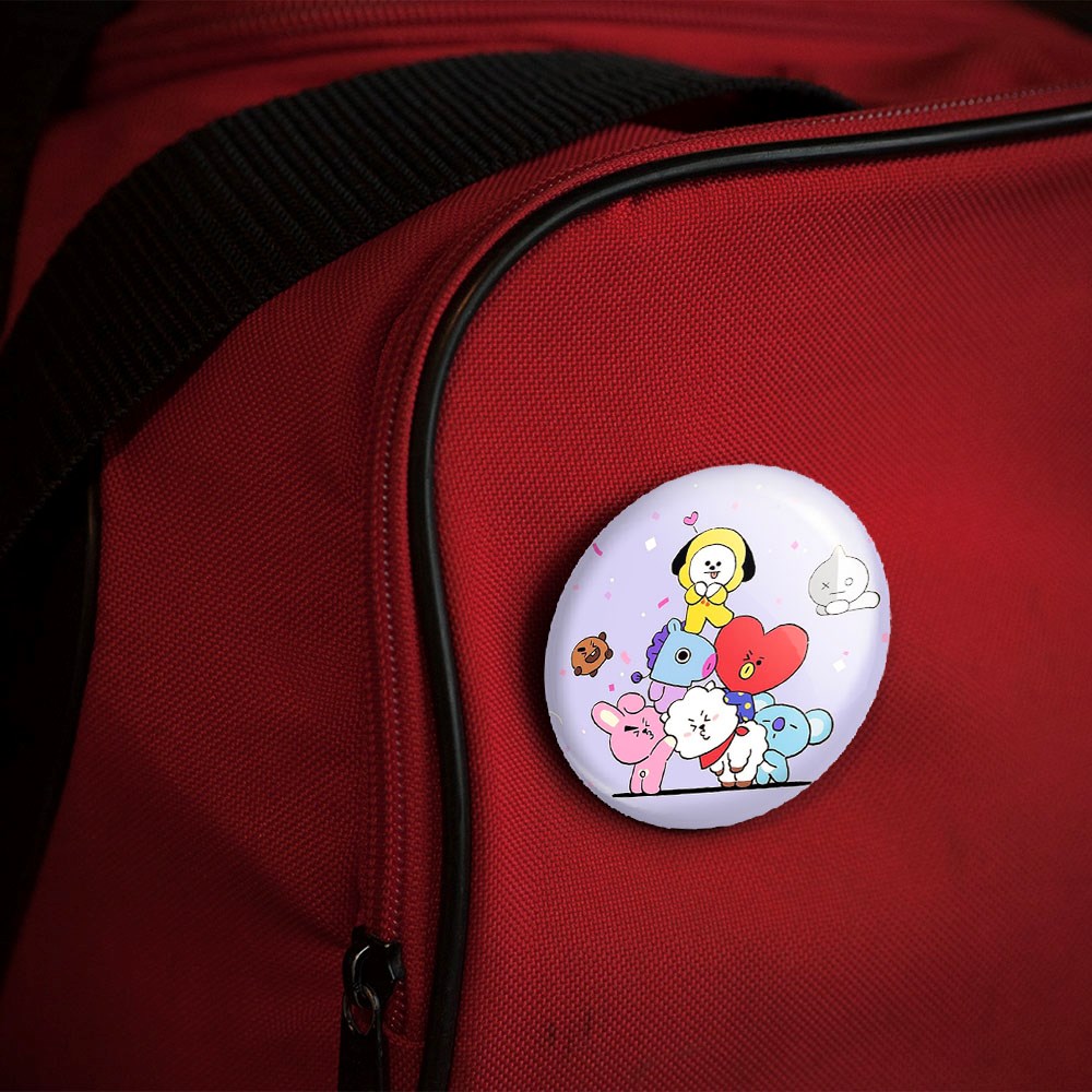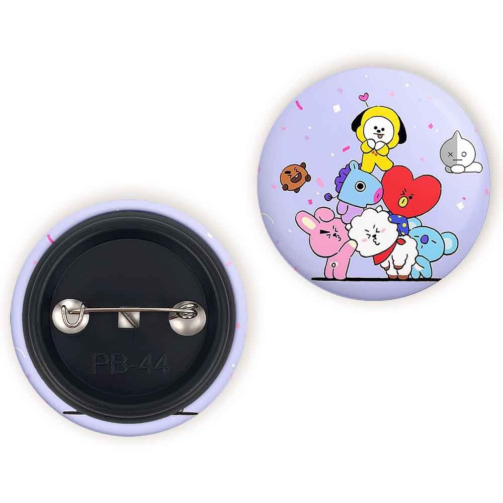 پیکسل 44 میلی متری BT21 خندالو با روکش سلفون حرارتی مات مخملی ضدخش و قطعه پشتی رنگی تولید شده است.پلاستیکی پشت پیکسل با سوزن یک تکه ثابت و بدون لغزش و جا به جایی، ایستایی بسیار بهتری نسبت به پشتی فلزی پیکسل دارند که این مهم در تولید این محصول نیز رعایت شده است.