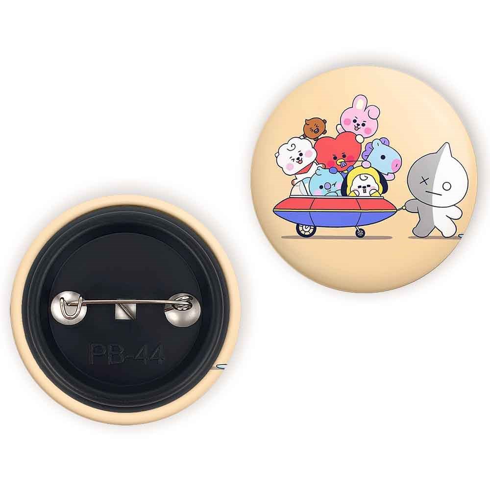 پیکسل 44 میلی متری BT21 خندالو با روکش سلفون حرارتی مات مخملی ضدخش و قطعه پشتی رنگی تولید شده است.پلاستیکی پشت پیکسل با سوزن یک تکه ثابت و بدون لغزش و جا به جایی، ایستایی بسیار بهتری نسبت به پشتی فلزی پیکسل دارند که این مهم در تولید این محصول نیز رعایت شده است.