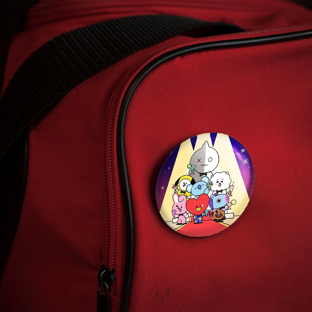 پیکسل 44 میلی متری BT21 خندالو با روکش سلفون حرارتی مات مخملی ضدخش و قطعه پشتی رنگی تولید شده است.پلاستیکی پشت پیکسل با سوزن یک تکه ثابت و بدون لغزش و جا به جایی، ایستایی بسیار بهتری نسبت به پشتی فلزی پیکسل دارند که این مهم در تولید این محصول نیز رعایت شده است.