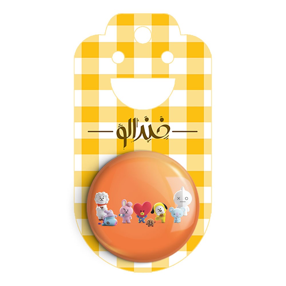 پیکسل 44 میلی متری BT21 خندالو با روکش سلفون حرارتی مات مخملی ضدخش و قطعه پشتی رنگی تولید شده است.پلاستیکی پشت پیکسل با سوزن یک تکه ثابت و بدون لغزش و جا به جایی، ایستایی بسیار بهتری نسبت به پشتی فلزی پیکسل دارند که این مهم در تولید این محصول نیز رعایت شده است.