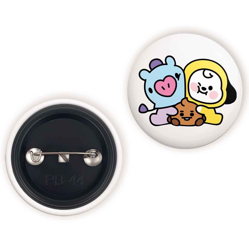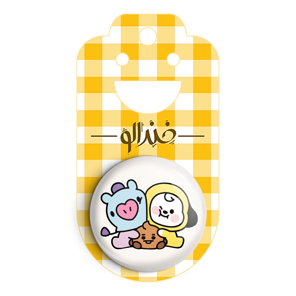 پیکسل 44 میلی متری BT21 خندالو با روکش سلفون حرارتی مات مخملی ضدخش و قطعه پشتی رنگی تولید شده است.پلاستیکی پشت پیکسل با سوزن یک تکه ثابت و بدون لغزش و جا به جایی، ایستایی بسیار بهتری نسبت به پشتی فلزی پیکسل دارند که این مهم در تولید این محصول نیز رعایت شده است.