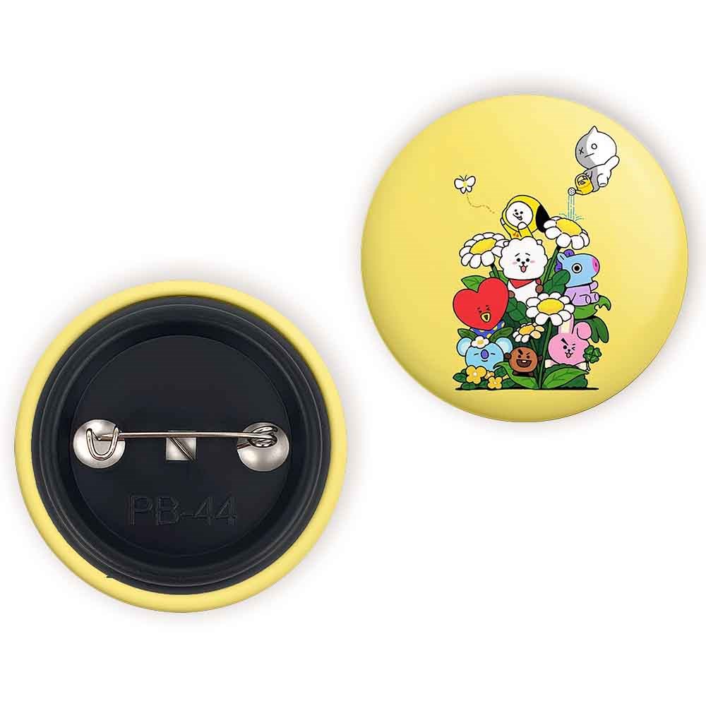پیکسل 44 میلی متری BT21 خندالو با روکش سلفون حرارتی مات مخملی ضدخش و قطعه پشتی رنگی تولید شده است.پلاستیکی پشت پیکسل با سوزن یک تکه ثابت و بدون لغزش و جا به جایی، ایستایی بسیار بهتری نسبت به پشتی فلزی پیکسل دارند که این مهم در تولید این محصول نیز رعایت شده است.