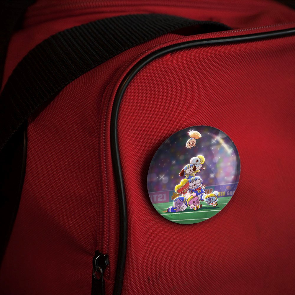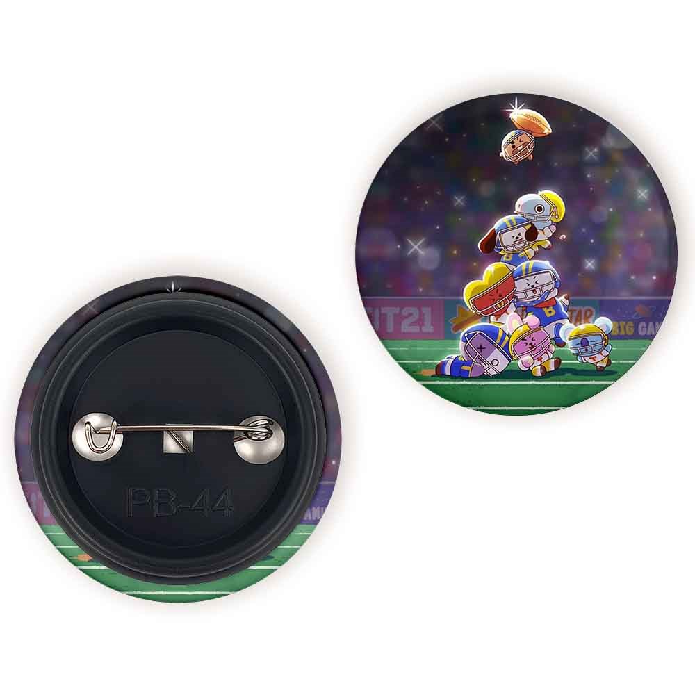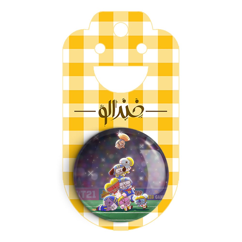 پیکسل 44 میلی متری BT21 خندالو با روکش سلفون حرارتی مات مخملی ضدخش و قطعه پشتی رنگی تولید شده است.پلاستیکی پشت پیکسل با سوزن یک تکه ثابت و بدون لغزش و جا به جایی، ایستایی بسیار بهتری نسبت به پشتی فلزی پیکسل دارند که این مهم در تولید این محصول نیز رعایت شده است.