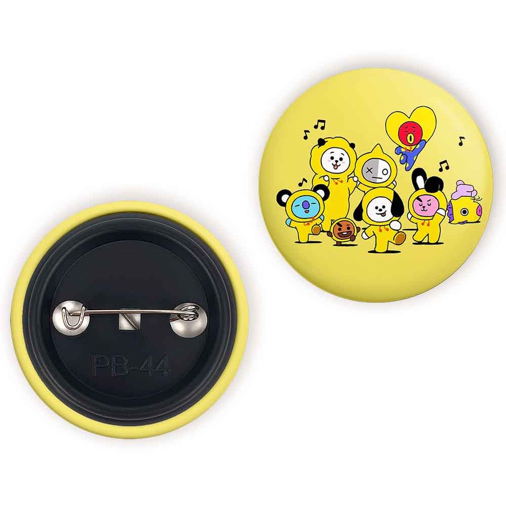 پیکسل 44 میلی متری BT21 خندالو با روکش سلفون حرارتی مات مخملی ضدخش و قطعه پشتی رنگی تولید شده است.پلاستیکی پشت پیکسل با سوزن یک تکه ثابت و بدون لغزش و جا به جایی، ایستایی بسیار بهتری نسبت به پشتی فلزی پیکسل دارند که این مهم در تولید این محصول نیز رعایت شده است.