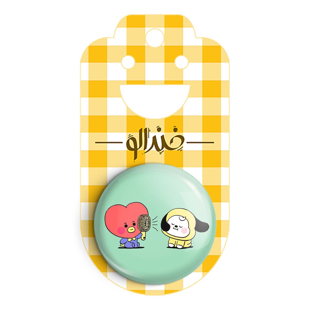 پیکسل 44 میلی متری BT21 خندالو با روکش سلفون حرارتی مات مخملی ضدخش و قطعه پشتی رنگی تولید شده است.پلاستیکی پشت پیکسل با سوزن یک تکه ثابت و بدون لغزش و جا به جایی، ایستایی بسیار بهتری نسبت به پشتی فلزی پیکسل دارند که این مهم در تولید این محصول نیز رعایت شده است.