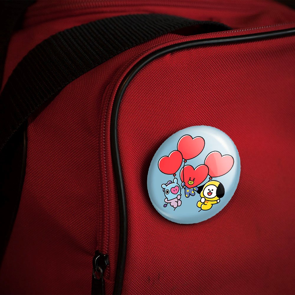 پیکسل 44 میلی متری BT21 خندالو با روکش سلفون حرارتی مات مخملی ضدخش و قطعه پشتی رنگی تولید شده است.پلاستیکی پشت پیکسل با سوزن یک تکه ثابت و بدون لغزش و جا به جایی، ایستایی بسیار بهتری نسبت به پشتی فلزی پیکسل دارند که این مهم در تولید این محصول نیز رعایت شده است.