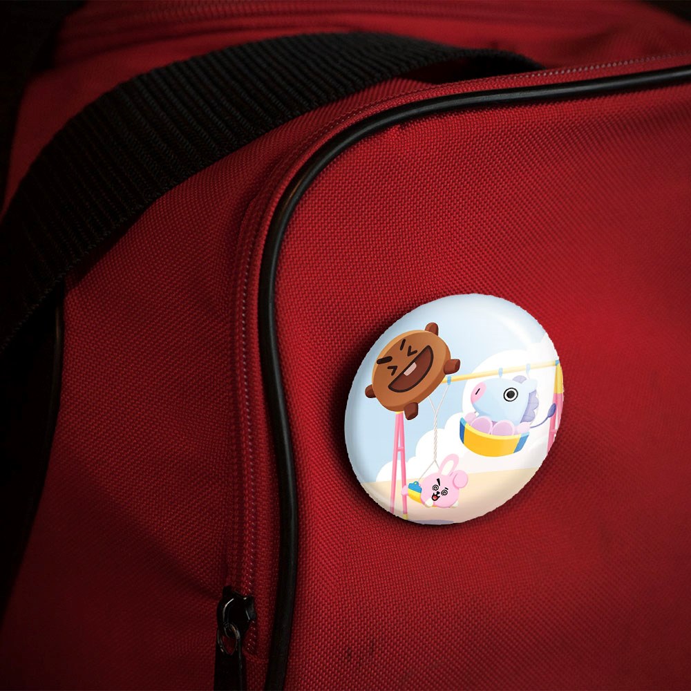 پیکسل 44 میلی متری BT21 خندالو با روکش سلفون حرارتی مات مخملی ضدخش و قطعه پشتی رنگی تولید شده است.پلاستیکی پشت پیکسل با سوزن یک تکه ثابت و بدون لغزش و جا به جایی، ایستایی بسیار بهتری نسبت به پشتی فلزی پیکسل دارند که این مهم در تولید این محصول نیز رعایت شده است.