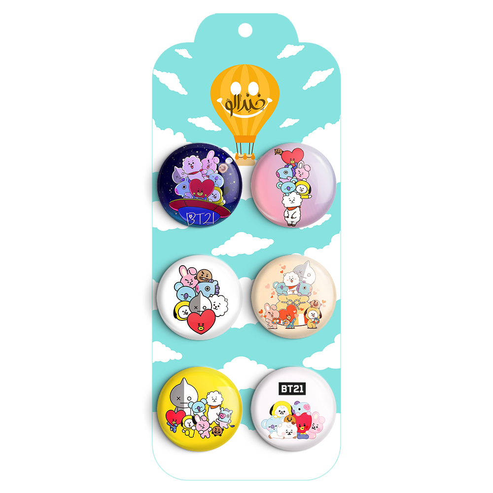 مجموعه 6 عددی پیکسل خندالو طرح BT21 با روکش سلفون حرارتی براق ضدخش و قطعه پشتی رنگی تولید شده است. قطعات پشتی از میان 6 رنگ سفید، مشکی، صورتی، زرد، آبی و قرمز که با توجه به نوع و رنگبندی طرح روی پیکسل انتخاب شده اند تولید می شود و در هر بسته بندی مطابق عکس محصول می باشد. قطعات پلاستیکی پشت پیکسل با سوزن یک تکه ثابت و بدون لغزش و جا به جایی، ایستایی بسیار بهتری نسبت به پشتی فلزی پیکسل دارند که این مهم در تولید این محصول نیز رعایت شده است. چاپ پیکسل نیز با دستگاه های استاندارد و با بهترین سطح کیفی صورت گرفته و طرح با شفافیتی مثال زدنی و با سلفونی بدون شکست نور بر روی پیکسل نقش بسته است. همچنین بسته بندی جذاب و مینیمال پیکسل ها، آنها را مناسب هدیه کرده است..