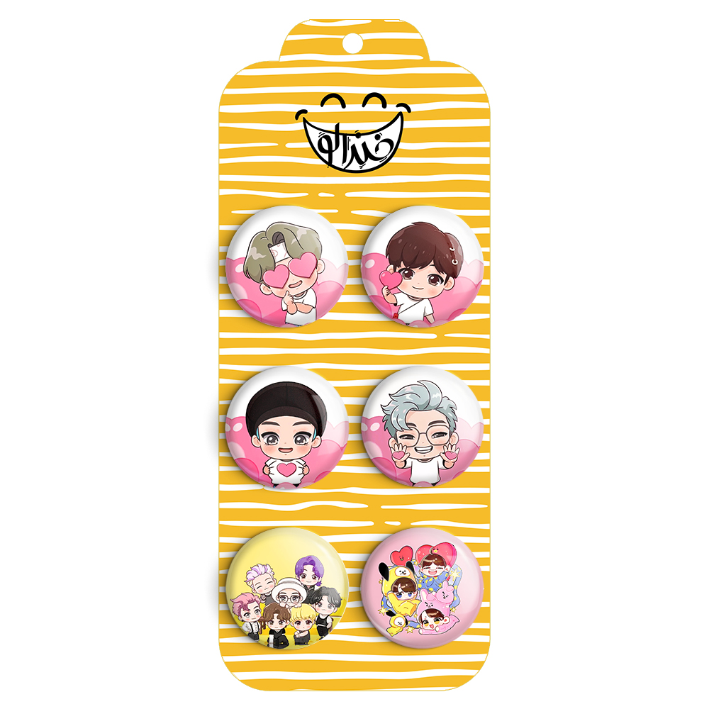 مجموعه 6 عددی پیکسل خندالو طرح BTS با روکش سلفون حرارتی براق ضدخش و قطعه پشتی رنگی تولید شده است. قطعات پشتی از میان 6 رنگ سفید، مشکی، صورتی، زرد، آبی و قرمز که با توجه به نوع و رنگبندی طرح روی پیکسل انتخاب شده اند تولید می شود و در هر بسته بندی مطابق عکس محصول می باشد.