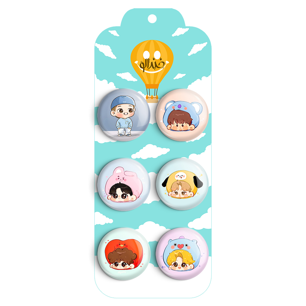 مجموعه 6 عددی پیکسل خندالو طرح BTS با روکش سلفون حرارتی براق ضدخش و قطعه پشتی رنگی تولید شده است. قطعات پشتی از میان 6 رنگ سفید، مشکی، صورتی، زرد، آبی و قرمز که با توجه به نوع و رنگبندی طرح روی پیکسل انتخاب شده اند تولید می شود و در هر بسته بندی مطابق عکس محصول می باشد.