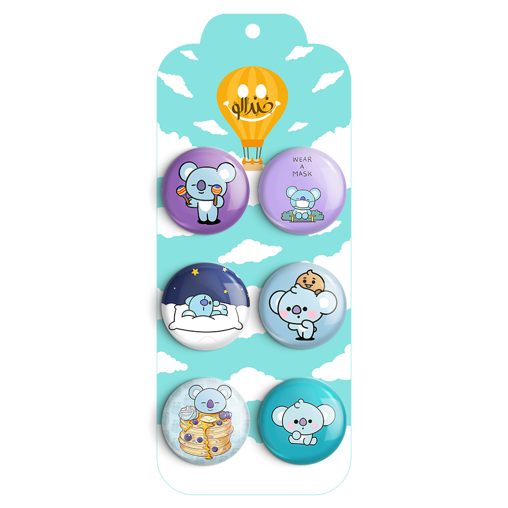 مجموعه 6 عددی پیکسل خندالو طرح Koya BT21 با روکش سلفون حرارتی براق ضدخش و قطعه پشتی رنگی تولید شده است. قطعات پشتی از میان 6 رنگ سفید، مشکی، صورتی، زرد، آبی و قرمز که با توجه به نوع و رنگبندی طرح روی پیکسل انتخاب شده اند تولید می شود و در هر بسته بندی مطابق عکس محصول می باشد. قطعات پلاستیکی پشت پیکسل با سوزن یک تکه ثابت و بدون لغزش و جا به جایی، ایستایی بسیار بهتری نسبت به پشتی فلزی پیکسل دارند که این مهم در تولید این محصول نیز رعایت شده است. چاپ پیکسل نیز با دستگاه های استاندارد و با بهترین سطح کیفی صورت گرفته و طرح با شفافیتی مثال زدنی و با سلفونی بدون شکست نور بر روی پیکسل نقش بسته است. همچنین بسته بندی جذاب و مینیمال پیکسل ها، آنها را مناسب هدیه کرده است..