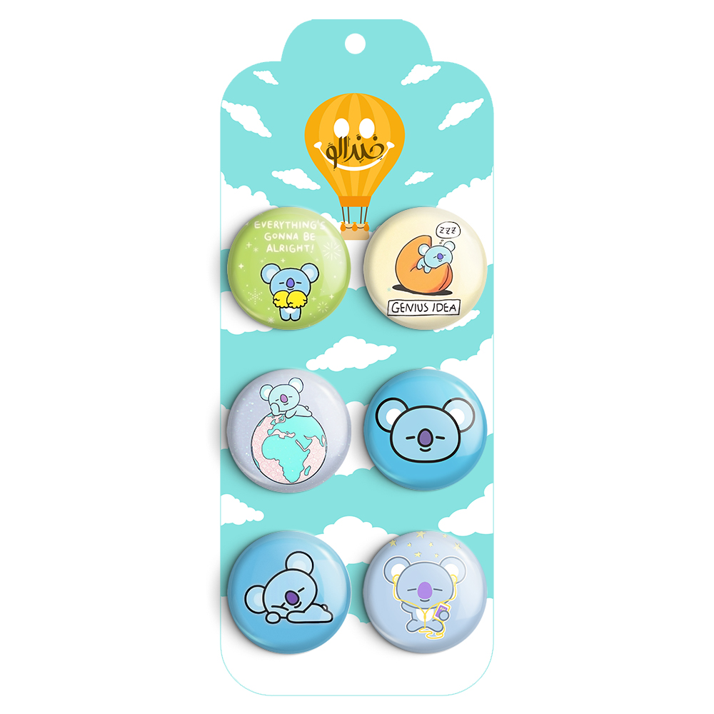 مجموعه 6 عددی پیکسل خندالو طرح Koya BT21 با روکش سلفون حرارتی براق ضدخش و قطعه پشتی رنگی تولید شده است. قطعات پشتی از میان 6 رنگ سفید، مشکی، صورتی، زرد، آبی و قرمز که با توجه به نوع و رنگبندی طرح روی پیکسل انتخاب شده اند تولید می شود و در هر بسته بندی مطابق عکس محصول می باشد. قطعات پلاستیکی پشت پیکسل با سوزن یک تکه ثابت و بدون لغزش و جا به جایی، ایستایی بسیار بهتری نسبت به پشتی فلزی پیکسل دارند که این مهم در تولید این محصول نیز رعایت شده است. چاپ پیکسل نیز با دستگاه های استاندارد و با بهترین سطح کیفی صورت گرفته و طرح با شفافیتی مثال زدنی و با سلفونی بدون شکست نور بر روی پیکسل نقش بسته است. همچنین بسته بندی جذاب و مینیمال پیکسل ها، آنها را مناسب هدیه کرده است..