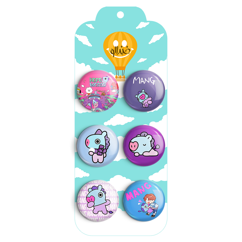 مجموعه 6 عددی پیکسل خندالو طرح Mang با روکش سلفون حرارتی براق ضدخش و قطعه پشتی رنگی تولید شده است. قطعات پشتی از میان 6 رنگ سفید، مشکی، صورتی، زرد، آبی و قرمز که با توجه به نوع و رنگبندی طرح روی پیکسل انتخاب شده اند تولید می شود و در هر بسته بندی مطابق عکس محصول می باشد. قطعات پلاستیکی پشت پیکسل با سوزن یک تکه ثابت و بدون لغزش و جا به جایی، ایستایی بسیار بهتری نسبت به پشتی فلزی پیکسل دارند که این مهم در تولید این محصول نیز رعایت شده است. چاپ پیکسل نیز با دستگاه های استاندارد و با بهترین سطح کیفی صورت گرفته و طرح با شفافیتی مثال زدنی و با سلفونی بدون شکست نور بر روی پیکسل نقش بسته است. همچنین بسته بندی جذاب و مینیمال پیکسل ها، آنها را مناسب هدیه کرده است..