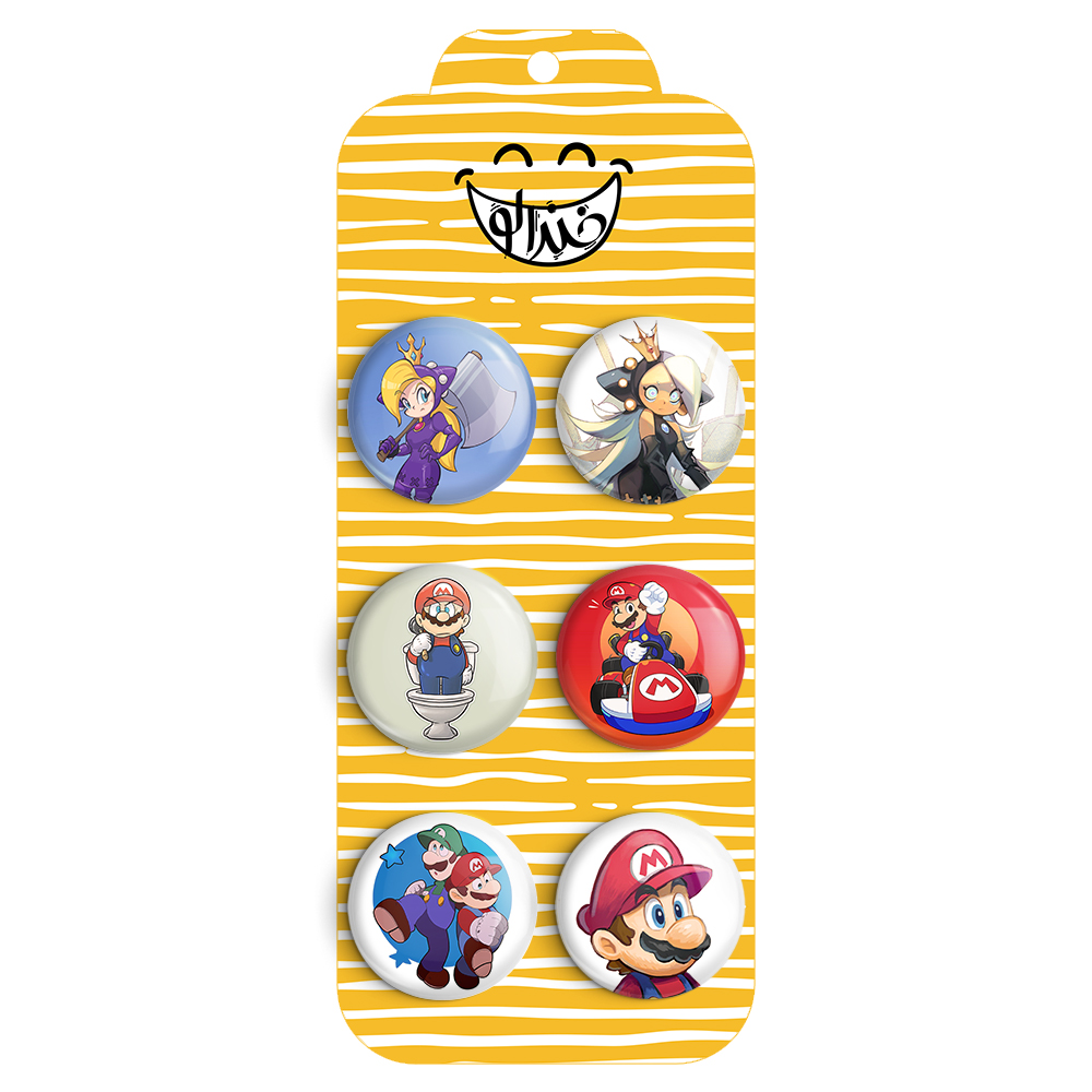 مجموعه 6 عددی پیکسل خندالو طرح (Mario) سوپر ماریو با روکش سلفون حرارتی براق ضدخش و قطعه پشتی رنگی تولید شده است. قطعات پشتی از میان 6 رنگ سفید، مشکی، صورتی، زرد، آبی و قرمز که با توجه به نوع و رنگبندی طرح روی پیکسل انتخاب شده اند تولید می شود و در هر بسته بندی مطابق عکس محصول می باشد.