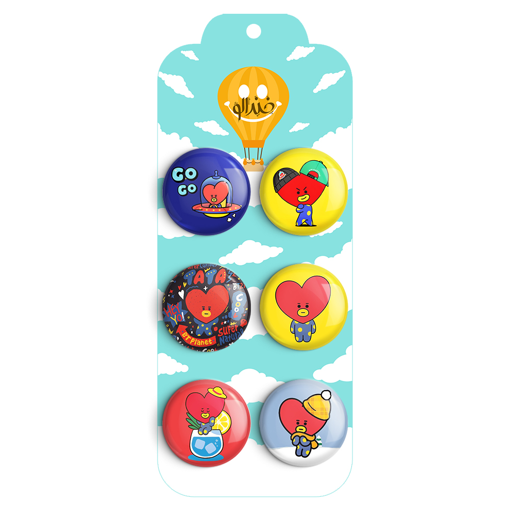 مجموعه 6 عددی پیکسل خندالو طرح Tata با روکش سلفون حرارتی براق ضدخش و قطعه پشتی رنگی تولید شده است. قطعات پشتی از میان 6 رنگ سفید، مشکی، صورتی، زرد، آبی و قرمز که با توجه به نوع و رنگبندی طرح روی پیکسل انتخاب شده اند تولید می شود و در هر بسته بندی مطابق عکس محصول می باشد. قطعات پلاستیکی پشت پیکسل با سوزن یک تکه ثابت و بدون لغزش و جا به جایی، ایستایی بسیار بهتری نسبت به پشتی فلزی پیکسل دارند که این مهم در تولید این محصول نیز رعایت شده است. چاپ پیکسل نیز با دستگاه های استاندارد و با بهترین سطح کیفی صورت گرفته و طرح با شفافیتی مثال زدنی و با سلفونی بدون شکست نور بر روی پیکسل نقش بسته است. همچنین بسته بندی جذاب و مینیمال پیکسل ها، آنها را مناسب هدیه کرده است..