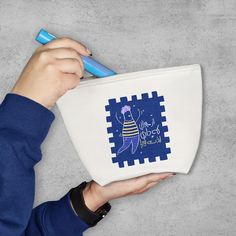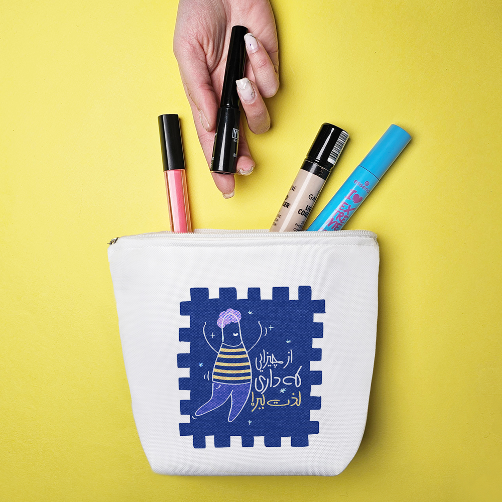 زیبایی در کنار کارایی، میتواند بهترین همراه برای وسایل روزمره باشد. در طراحی کیف لوازم آرایش خندالو طرح از چیزایی که داری لذت ببر! این اصل در نظر گرفته شده تا محصولی شیک، کاربردی و بادوام در اختیار شما باشد. این کیفها از پارچهی هازان مقاوم ساخته شدهاند که علاوه بر ظاهر زیبا، استحکام بالایی نیز دارد. ابعاد کیف لوازم آرایش خندالو طرح از چیزایی که داری لذت ببر! ۲۲×۱۶ سانتیمتر است و طراحی کف پاکتی ۸ سانتیمتری آن، باعث میشود فضای بیشتری برای وسایل خود داشته باشید و فرم کیف بهتر حفظ شود. برای افزایش دوام و استحکام، داخل آن آسترکشی شده است. چاپ روی کیف بهصورت دیجیتال و باکیفیت بالا انجام شده که باعث دوام و ماندگاری طرحها میشود. این محصول کاملاً قابل شستشو است و میتوانید بدون نگرانی از تغییر رنگ یا آسیبدیدگی، آن را هم با دست و هم با ماشین لباسشویی بشویید. یکی دیگر از ویژگیهای کیف لوازم آرایش خندالو طرح از چیزایی که داری لذت ببر!، بستهبندی شیک و زیبا آن است که آن را به گزینهای ایدهآل برای هدیه دادن تبدیل میکند. این کیف نهتنها برای نگهداری لوازم آرایشی و بهداشتی، بلکه برای سایر وسایل ضروری نیز مناسب است. محصولی که در کنار کاربردی بودن، به سبک زندگی شما زیبایی و نظم میبخشد. کیف لوازم آرایش خندالو، همراهی زیبا و ماندگار برای شما!