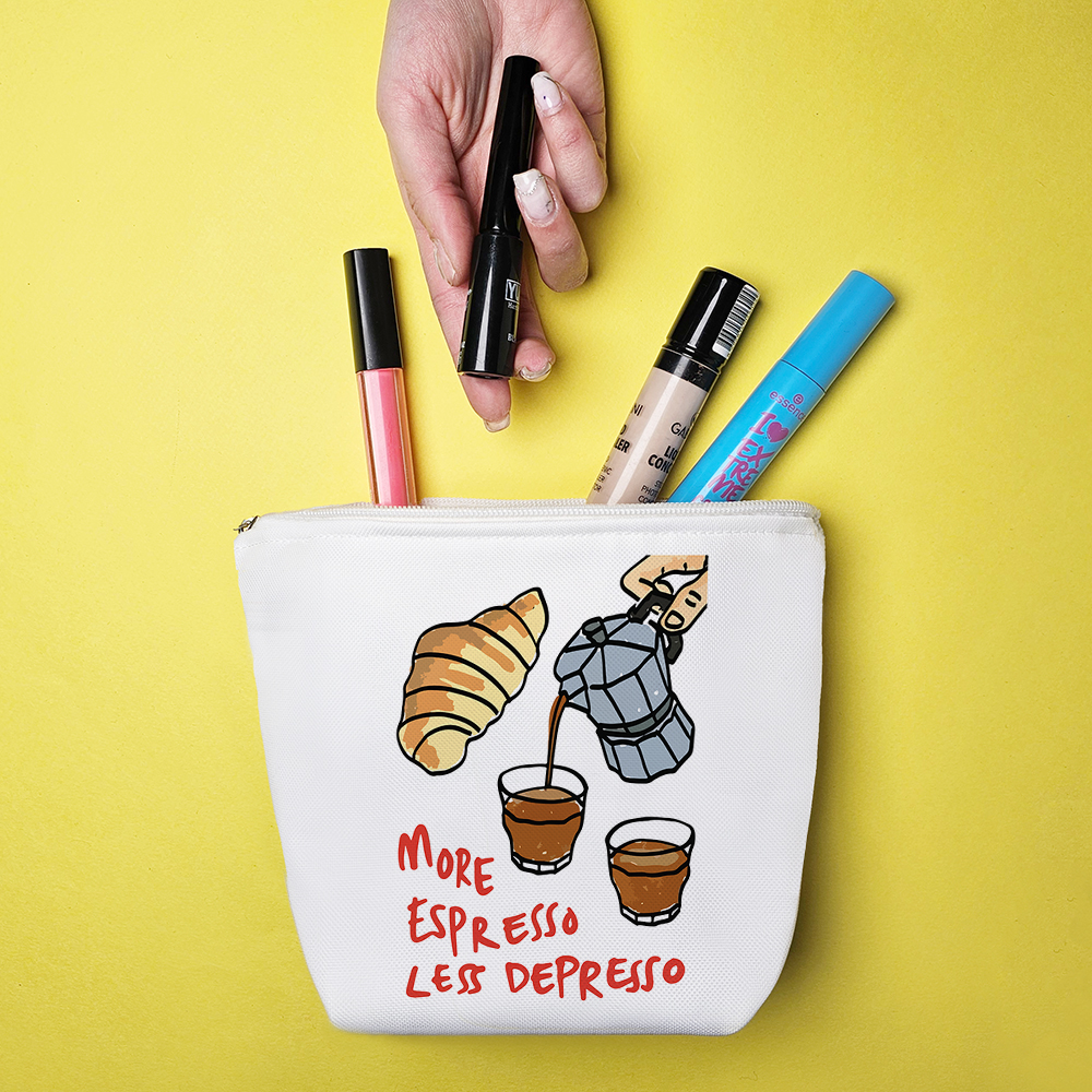 زیبایی در کنار کارایی، میتواند بهترین همراه برای وسایل روزمره باشد. در طراحی کیف لوازم آرایش خندالو طرح اسپرسو بیشتر دپرسی کمتر این اصل در نظر گرفته شده تا محصولی شیک، کاربردی و بادوام در اختیار شما باشد. این کیفها از پارچهی هازان مقاوم ساخته شدهاند که علاوه بر ظاهر زیبا، استحکام بالایی نیز دارد. ابعاد کیف لوازم آرایش خندالو طرح اسپرسو بیشتر دپرسی کمتر ۲۲×۱۶ سانتیمتر است و طراحی کف پاکتی ۸ سانتیمتری آن، باعث میشود فضای بیشتری برای وسایل خود داشته باشید و فرم کیف بهتر حفظ شود. برای افزایش دوام و استحکام، داخل آن آسترکشی شده است. چاپ روی کیف بهصورت دیجیتال و باکیفیت بالا انجام شده که باعث دوام و ماندگاری طرحها میشود. این محصول کاملاً قابل شستشو است و میتوانید بدون نگرانی از تغییر رنگ یا آسیبدیدگی، آن را هم با دست و هم با ماشین لباسشویی بشویید. یکی دیگر از ویژگیهای کیف لوازم آرایش خندالو طرح اسپرسو بیشتر دپرسی کمتر، بستهبندی شیک و زیبا آن است که آن را به گزینهای ایدهآل برای هدیه دادن تبدیل میکند. این کیف نهتنها برای نگهداری لوازم آرایشی و بهداشتی، بلکه برای سایر وسایل ضروری نیز مناسب است. محصولی که در کنار کاربردی بودن، به سبک زندگی شما زیبایی و نظم میبخشد. کیف لوازم آرایش خندالو، همراهی زیبا و ماندگار برای شما!