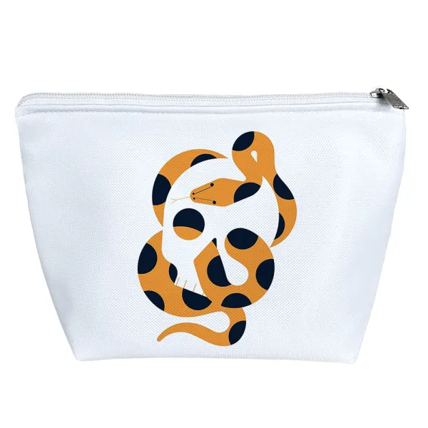 زیبایی در کنار کارایی، می‌تواند بهترین همراه برای وسایل روزمره باشد. در طراحی کیف لوازم آرایش خندالو طرح اسکلت و مار این اصل در نظر گرفته شده تا محصولی شیک، کاربردی و بادوام در اختیار شما باشد. این کیف‌ها از پارچه‌ی هازان مقاوم ساخته شده‌اند که علاوه بر ظاهر زیبا، استحکام بالایی نیز دارد. ابعاد کیف لوازم آرایش خندالو طرح اسکلت و مار ۲۲×۱۶ سانتی‌متر است و طراحی کف پاکتی ۸ سانتی‌متری آن، باعث می‌شود فضای بیشتری برای وسایل خود داشته باشید و فرم کیف بهتر حفظ شود. برای افزایش دوام و استحکام، داخل آن آسترکشی شده است. چاپ روی کیف به‌صورت دیجیتال و باکیفیت بالا انجام شده که باعث دوام و ماندگاری طرح‌ها می‌شود. این محصول کاملاً قابل شستشو است و می‌توانید بدون نگرانی از تغییر رنگ یا آسیب‌دیدگی، آن را هم با دست و هم با ماشین لباسشویی بشویید. یکی دیگر از ویژگی‌های کیف لوازم آرایش خندالو طرح اسکلت و مار، بسته‌بندی شیک و زیبا آن است که آن را به گزینه‌ای ایده‌آل برای هدیه دادن تبدیل می‌کند. این کیف نه‌تنها برای نگهداری لوازم آرایشی و بهداشتی، بلکه برای سایر وسایل ضروری نیز مناسب است. محصولی که در کنار کاربردی بودن، به سبک زندگی شما زیبایی و نظم می‌بخشد. کیف لوازم آرایش خندالو، همراهی زیبا و ماندگار برای شما!