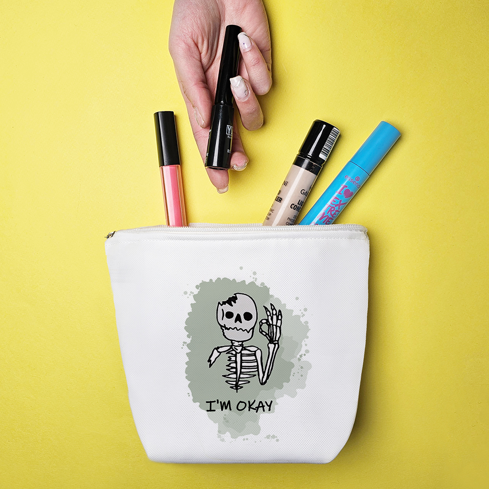 زیبایی در کنار کارایی، می‌تواند بهترین همراه برای وسایل روزمره باشد. در طراحی کیف لوازم آرایش خندالو طرح اسکلت این اصل در نظر گرفته شده تا محصولی شیک، کاربردی و بادوام در اختیار شما باشد. این کیف‌ها از پارچه‌ی هازان مقاوم ساخته شده‌اند که علاوه بر ظاهر زیبا، استحکام بالایی نیز دارد. ابعاد کیف لوازم آرایش خندالو طرح اسکلت ۲۲×۱۶ سانتی‌متر است و طراحی کف پاکتی ۸ سانتی‌متری آن، باعث می‌شود فضای بیشتری برای وسایل خود داشته باشید و فرم کیف بهتر حفظ شود. برای افزایش دوام و استحکام، داخل آن آسترکشی شده است. چاپ روی کیف به‌صورت دیجیتال و باکیفیت بالا انجام شده که باعث دوام و ماندگاری طرح‌ها می‌شود. این محصول کاملاً قابل شستشو است و می‌توانید بدون نگرانی از تغییر رنگ یا آسیب‌دیدگی، آن را هم با دست و هم با ماشین لباسشویی بشویید. یکی دیگر از ویژگی‌های کیف لوازم آرایش خندالو طرح اسکلت، بسته‌بندی شیک و زیبا آن است که آن را به گزینه‌ای ایده‌آل برای هدیه دادن تبدیل می‌کند. این کیف نه‌تنها برای نگهداری لوازم آرایشی و بهداشتی، بلکه برای سایر وسایل ضروری نیز مناسب است. محصولی که در کنار کاربردی بودن، به سبک زندگی شما زیبایی و نظم می‌بخشد. کیف لوازم آرایش خندالو، همراهی زیبا و ماندگار برای شما!