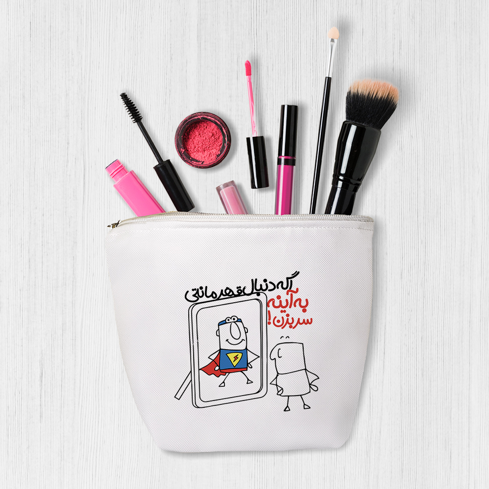زیبایی در کنار کارایی، میتواند بهترین همراه برای وسایل روزمره باشد. در طراحی کیف لوازم آرایش خندالو طرح اگه دنبال قهرمانتی به آینه سر بزن این اصل در نظر گرفته شده تا محصولی شیک، کاربردی و بادوام در اختیار شما باشد. این کیفها از پارچهی هازان مقاوم ساخته شدهاند که علاوه بر ظاهر زیبا، استحکام بالایی نیز دارد. ابعاد کیف لوازم آرایش خندالو طرح اگه دنبال قهرمانتی به آینه سر بزن ۲۲×۱۶ سانتیمتر است و طراحی کف پاکتی ۸ سانتیمتری آن، باعث میشود فضای بیشتری برای وسایل خود داشته باشید و فرم کیف بهتر حفظ شود. برای افزایش دوام و استحکام، داخل آن آسترکشی شده است. چاپ روی کیف بهصورت دیجیتال و باکیفیت بالا انجام شده که باعث دوام و ماندگاری طرحها میشود. این محصول کاملاً قابل شستشو است و میتوانید بدون نگرانی از تغییر رنگ یا آسیبدیدگی، آن را هم با دست و هم با ماشین لباسشویی بشویید. یکی دیگر از ویژگیهای کیف لوازم آرایش خندالو طرح اگه دنبال قهرمانتی به آینه سر بزن، بستهبندی شیک و زیبا آن است که آن را به گزینهای ایدهآل برای هدیه دادن تبدیل میکند. این کیف نهتنها برای نگهداری لوازم آرایشی و بهداشتی، بلکه برای سایر وسایل ضروری نیز مناسب است. محصولی که در کنار کاربردی بودن، به سبک زندگی شما زیبایی و نظم میبخشد. کیف لوازم آرایش خندالو، همراهی زیبا و ماندگار برای شما!