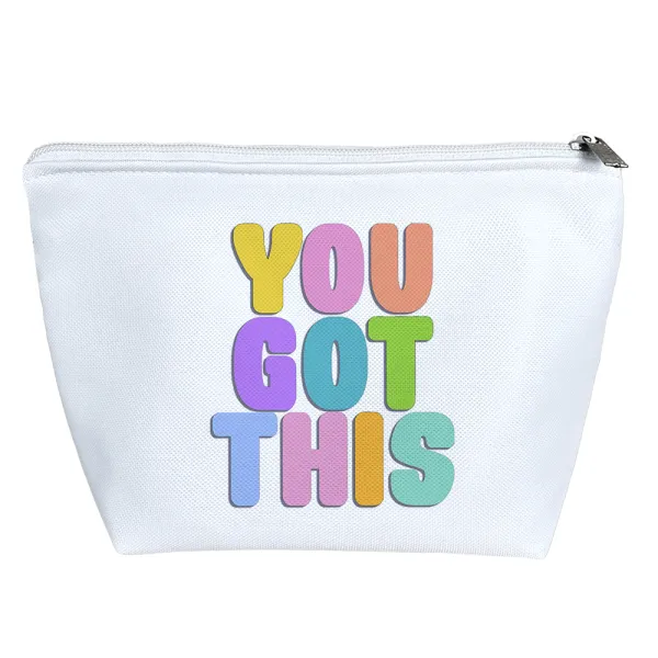 زیبایی در کنار کارایی، می‌تواند بهترین همراه برای وسایل روزمره باشد. در طراحی کیف لوازم آرایش خندالو طرح جمله انگیزشی این اصل در نظر گرفته شده تا محصولی شیک، کاربردی و بادوام در اختیار شما باشد. این کیف‌ها از پارچه‌ی هازان مقاوم ساخته شده‌اند که علاوه بر ظاهر زیبا، استحکام بالایی نیز دارد. ابعاد کیف لوازم آرایش خندالو طرح جمله انگیزشی ۲۲×۱۶ سانتی‌متر است و طراحی کف پاکتی ۸ سانتی‌متری آن، باعث می‌شود فضای بیشتری برای وسایل خود داشته باشید و فرم کیف بهتر حفظ شود. برای افزایش دوام و استحکام، داخل آن آسترکشی شده است. چاپ روی کیف به‌صورت دیجیتال و باکیفیت بالا انجام شده که باعث دوام و ماندگاری طرح‌ها می‌شود. این محصول کاملاً قابل شستشو است و می‌توانید بدون نگرانی از تغییر رنگ یا آسیب‌دیدگی، آن را هم با دست و هم با ماشین لباسشویی بشویید. یکی دیگر از ویژگی‌های کیف لوازم آرایش خندالو طرح جمله انگیزشی، بسته‌بندی شیک و زیبا آن است که آن را به گزینه‌ای ایده‌آل برای هدیه دادن تبدیل می‌کند. این کیف نه‌تنها برای نگهداری لوازم آرایشی و بهداشتی، بلکه برای سایر وسایل ضروری نیز مناسب است. محصولی که در کنار کاربردی بودن، به سبک زندگی شما زیبایی و نظم می‌بخشد. کیف لوازم آرایش خندالو، همراهی زیبا و ماندگار برای شما!