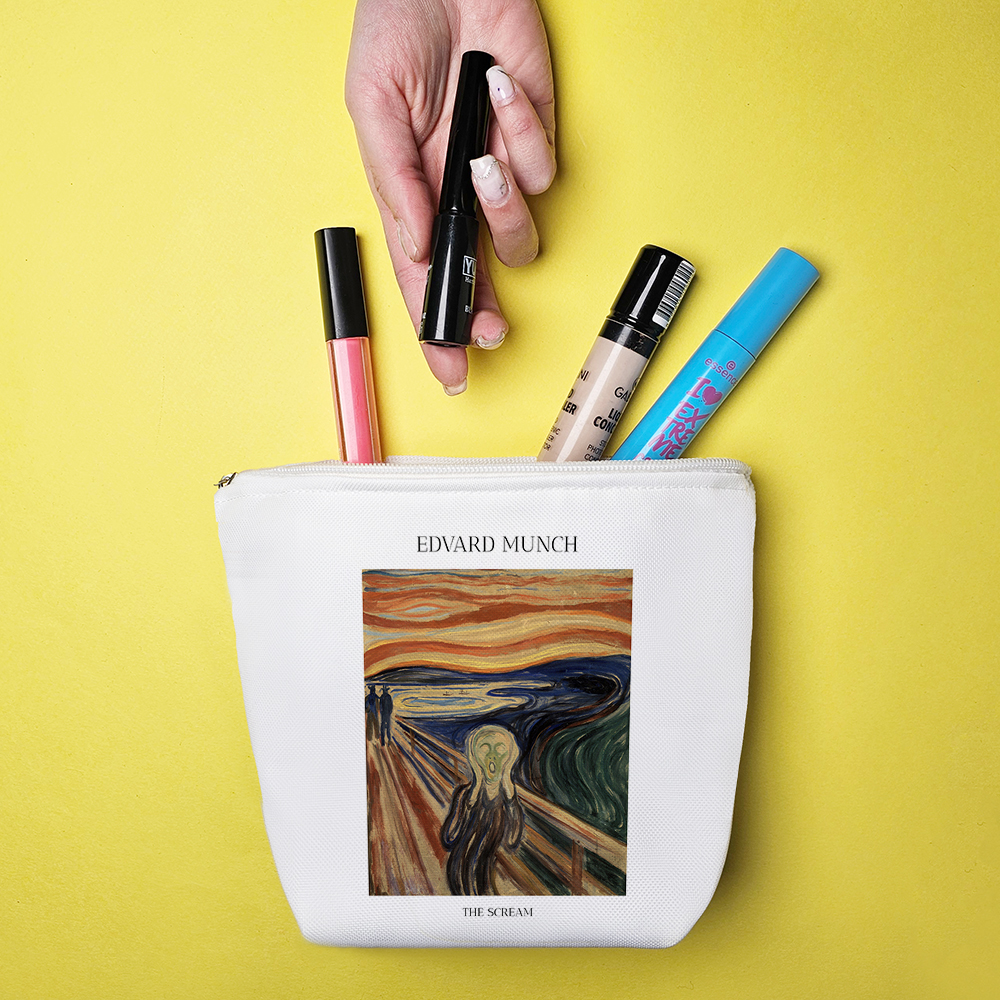 زیبایی در کنار کارایی، می‌تواند بهترین همراه برای وسایل روزمره باشد. در طراحی کیف لوازم آرایش خندالو طرح جیغ ادوارد مونک این اصل در نظر گرفته شده تا محصولی شیک، کاربردی و بادوام در اختیار شما باشد. این کیف‌ها از پارچه‌ی هازان مقاوم ساخته شده‌اند که علاوه بر ظاهر زیبا، استحکام بالایی نیز دارد. ابعاد کیف لوازم آرایش خندالو طرح جیغ ادوارد مونک ۲۲×۱۶ سانتی‌متر است و طراحی کف پاکتی ۸ سانتی‌متری آن، باعث می‌شود فضای بیشتری برای وسایل خود داشته باشید و فرم کیف بهتر حفظ شود. برای افزایش دوام و استحکام، داخل آن آسترکشی شده است. چاپ روی کیف به‌صورت دیجیتال و باکیفیت بالا انجام شده که باعث دوام و ماندگاری طرح‌ها می‌شود. این محصول کاملاً قابل شستشو است و می‌توانید بدون نگرانی از تغییر رنگ یا آسیب‌دیدگی، آن را هم با دست و هم با ماشین لباسشویی بشویید. یکی دیگر از ویژگی‌های کیف لوازم آرایش خندالو طرح جیغ ادوارد مونک، بسته‌بندی شیک و زیبا آن است که آن را به گزینه‌ای ایده‌آل برای هدیه دادن تبدیل می‌کند. این کیف نه‌تنها برای نگهداری لوازم آرایشی و بهداشتی، بلکه برای سایر وسایل ضروری نیز مناسب است. محصولی که در کنار کاربردی بودن، به سبک زندگی شما زیبایی و نظم می‌بخشد. کیف لوازم آرایش خندالو، همراهی زیبا و ماندگار برای شما!