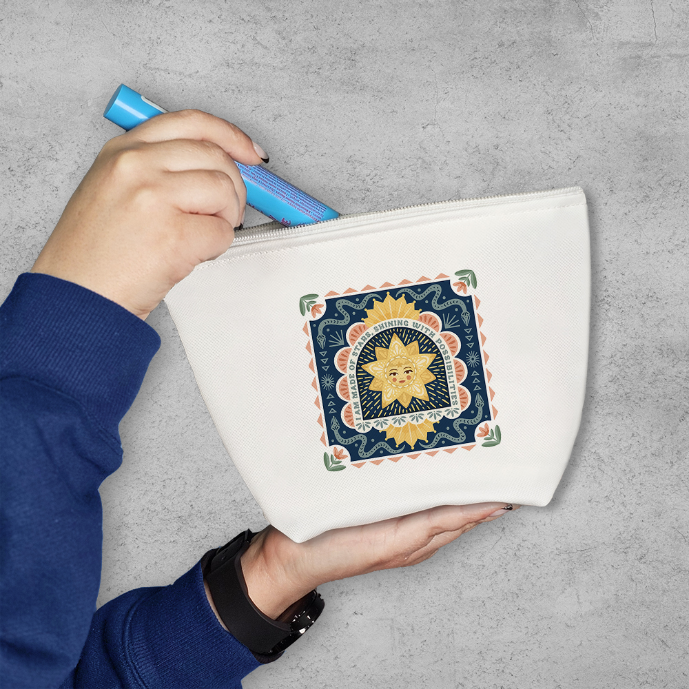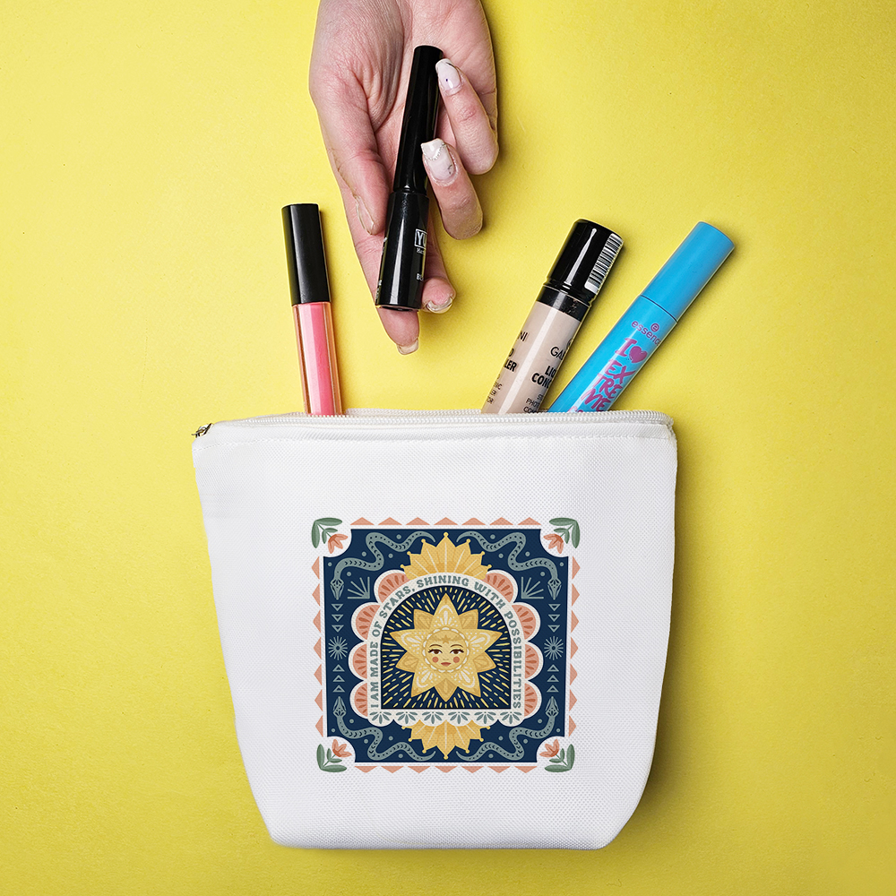 زیبایی در کنار کارایی، می‌تواند بهترین همراه برای وسایل روزمره باشد. در طراحی کیف لوازم آرایش خندالو طرح خورشید خانم این اصل در نظر گرفته شده تا محصولی شیک، کاربردی و بادوام در اختیار شما باشد. این کیف‌ها از پارچه‌ی هازان مقاوم ساخته شده‌اند که علاوه بر ظاهر زیبا، استحکام بالایی نیز دارد. ابعاد کیف لوازم آرایش خندالو طرح خورشید خانم ۲۲×۱۶ سانتی‌متر است و طراحی کف پاکتی ۸ سانتی‌متری آن، باعث می‌شود فضای بیشتری برای وسایل خود داشته باشید و فرم کیف بهتر حفظ شود. برای افزایش دوام و استحکام، داخل آن آسترکشی شده است. چاپ روی کیف به‌صورت دیجیتال و باکیفیت بالا انجام شده که باعث دوام و ماندگاری طرح‌ها می‌شود. این محصول کاملاً قابل شستشو است و می‌توانید بدون نگرانی از تغییر رنگ یا آسیب‌دیدگی، آن را هم با دست و هم با ماشین لباسشویی بشویید. یکی دیگر از ویژگی‌های کیف لوازم آرایش خندالو طرح خورشید خانم، بسته‌بندی شیک و زیبا آن است که آن را به گزینه‌ای ایده‌آل برای هدیه دادن تبدیل می‌کند. این کیف نه‌تنها برای نگهداری لوازم آرایشی و بهداشتی، بلکه برای سایر وسایل ضروری نیز مناسب است. محصولی که در کنار کاربردی بودن، به سبک زندگی شما زیبایی و نظم می‌بخشد. کیف لوازم آرایش خندالو، همراهی زیبا و ماندگار برای شما!