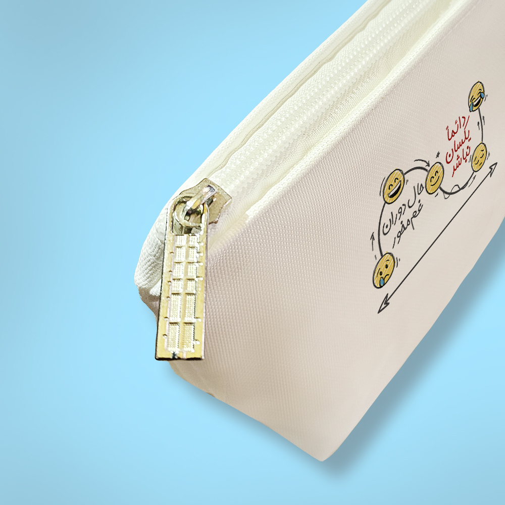 زیبایی در کنار کارایی، می‌تواند بهترین همراه برای وسایل روزمره باشد. در طراحی کیف لوازم آرایش خندالو طرح دائما یکسان نباشد حال دوران غم مخور این اصل در نظر گرفته شده تا محصولی شیک، کاربردی و بادوام در اختیار شما باشد. این کیف‌ها از پارچه‌ی هازان مقاوم ساخته شده‌اند که علاوه بر ظاهر زیبا، استحکام بالایی نیز دارد. ابعاد کیف لوازم آرایش خندالو طرح دائما یکسان نباشد حال دوران غم مخور ۲۲×۱۶ سانتی‌متر است و طراحی کف پاکتی ۸ سانتی‌متری آن، باعث می‌شود فضای بیشتری برای وسایل خود داشته باشید و فرم کیف بهتر حفظ شود. برای افزایش دوام و استحکام، داخل آن آسترکشی شده است. چاپ روی کیف به‌صورت دیجیتال و باکیفیت بالا انجام شده که باعث دوام و ماندگاری طرح‌ها می‌شود. این محصول کاملاً قابل شستشو است و می‌توانید بدون نگرانی از تغییر رنگ یا آسیب‌دیدگی، آن را هم با دست و هم با ماشین لباسشویی بشویید. یکی دیگر از ویژگی‌های کیف لوازم آرایش خندالو طرح دائما یکسان نباشد حال دوران غم مخور، بسته‌بندی شیک و زیبا آن است که آن را به گزینه‌ای ایده‌آل برای هدیه دادن تبدیل می‌کند. این کیف نه‌تنها برای نگهداری لوازم آرایشی و بهداشتی، بلکه برای سایر وسایل ضروری نیز مناسب است. محصولی که در کنار کاربردی بودن، به سبک زندگی شما زیبایی و نظم می‌بخشد. کیف لوازم آرایش خندالو، همراهی زیبا و ماندگار برای شما!