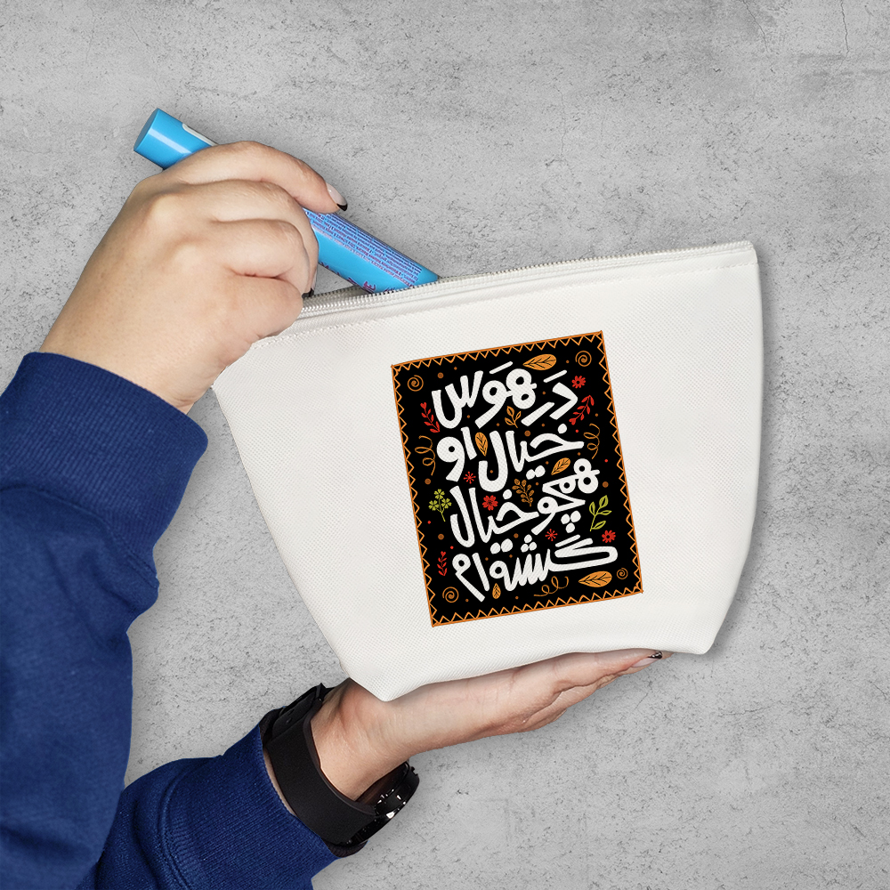 زیبایی در کنار کارایی، میتواند بهترین همراه برای وسایل روزمره باشد. در طراحی کیف لوازم آرایش خندالو طرح در هوس خیال او همچو خیال گشته ام این اصل در نظر گرفته شده تا محصولی شیک، کاربردی و بادوام در اختیار شما باشد. این کیفها از پارچهی هازان مقاوم ساخته شدهاند که علاوه بر ظاهر زیبا، استحکام بالایی نیز دارد. ابعاد کیف لوازم آرایش خندالو طرح در هوس خیال او همچو خیال گشته ام ۲۲×۱۶ سانتیمتر است و طراحی کف پاکتی ۸ سانتیمتری آن، باعث میشود فضای بیشتری برای وسایل خود داشته باشید و فرم کیف بهتر حفظ شود. برای افزایش دوام و استحکام، داخل آن آسترکشی شده است. چاپ روی کیف بهصورت دیجیتال و باکیفیت بالا انجام شده که باعث دوام و ماندگاری طرحها میشود. این محصول کاملاً قابل شستشو است و میتوانید بدون نگرانی از تغییر رنگ یا آسیبدیدگی، آن را هم با دست و هم با ماشین لباسشویی بشویید. یکی دیگر از ویژگیهای کیف لوازم آرایش خندالو طرح در هوس خیال او همچو خیال گشته ام، بستهبندی شیک و زیبا آن است که آن را به گزینهای ایدهآل برای هدیه دادن تبدیل میکند. این کیف نهتنها برای نگهداری لوازم آرایشی و بهداشتی، بلکه برای سایر وسایل ضروری نیز مناسب است. محصولی که در کنار کاربردی بودن، به سبک زندگی شما زیبایی و نظم میبخشد. کیف لوازم آرایش خندالو، همراهی زیبا و ماندگار برای شما!