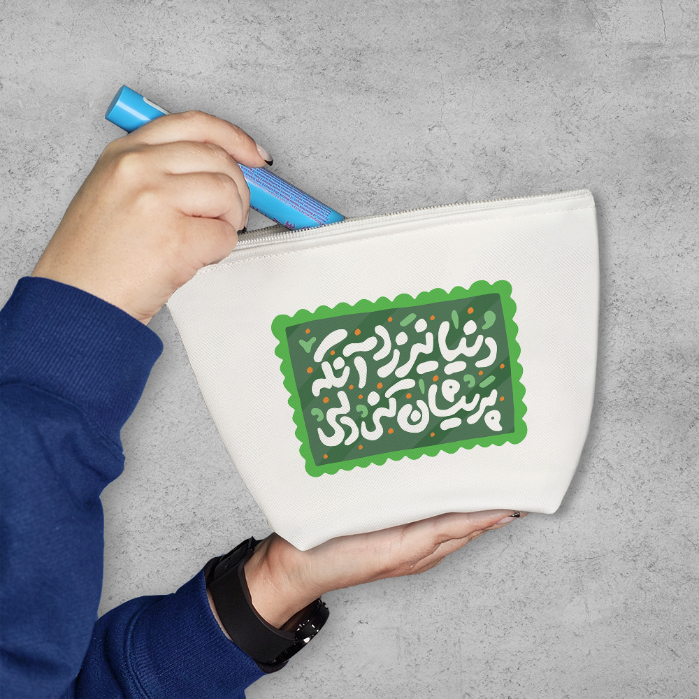 زیبایی در کنار کارایی، میتواند بهترین همراه برای وسایل روزمره باشد. در طراحی کیف لوازم آرایش خندالو طرح دنیا نیرزد آنکه پریشان کنی دلی این اصل در نظر گرفته شده تا محصولی شیک، کاربردی و بادوام در اختیار شما باشد. این کیفها از پارچهی هازان مقاوم ساخته شدهاند که علاوه بر ظاهر زیبا، استحکام بالایی نیز دارد. ابعاد کیف لوازم آرایش خندالو طرح دنیا نیرزد آنکه پریشان کنی دلی ۲۲×۱۶ سانتیمتر است و طراحی کف پاکتی ۸ سانتیمتری آن، باعث میشود فضای بیشتری برای وسایل خود داشته باشید و فرم کیف بهتر حفظ شود. برای افزایش دوام و استحکام، داخل آن آسترکشی شده است. چاپ روی کیف بهصورت دیجیتال و باکیفیت بالا انجام شده که باعث دوام و ماندگاری طرحها میشود. این محصول کاملاً قابل شستشو است و میتوانید بدون نگرانی از تغییر رنگ یا آسیبدیدگی، آن را هم با دست و هم با ماشین لباسشویی بشویید. یکی دیگر از ویژگیهای کیف لوازم آرایش خندالو طرح دنیا نیرزد آنکه پریشان کنی دلی، بستهبندی شیک و زیبا آن است که آن را به گزینهای ایدهآل برای هدیه دادن تبدیل میکند. این کیف نهتنها برای نگهداری لوازم آرایشی و بهداشتی، بلکه برای سایر وسایل ضروری نیز مناسب است. محصولی که در کنار کاربردی بودن، به سبک زندگی شما زیبایی و نظم میبخشد. کیف لوازم آرایش خندالو، همراهی زیبا و ماندگار برای شما!