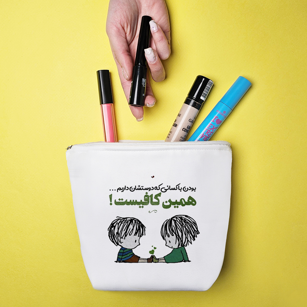 زیبایی در کنار کارایی، میتواند بهترین همراه برای وسایل روزمره باشد. در طراحی کیف لوازم آرایش خندالو طرح رفاقت این اصل در نظر گرفته شده تا محصولی شیک، کاربردی و بادوام در اختیار شما باشد. این کیفها از پارچهی هازان مقاوم ساخته شدهاند که علاوه بر ظاهر زیبا، استحکام بالایی نیز دارد. ابعاد کیف لوازم آرایش خندالو طرح رفاقت ۲۲×۱۶ سانتیمتر است و طراحی کف پاکتی ۸ سانتیمتری آن، باعث میشود فضای بیشتری برای وسایل خود داشته باشید و فرم کیف بهتر حفظ شود. برای افزایش دوام و استحکام، داخل آن آسترکشی شده است. چاپ روی کیف بهصورت دیجیتال و باکیفیت بالا انجام شده که باعث دوام و ماندگاری طرحها میشود. این محصول کاملاً قابل شستشو است و میتوانید بدون نگرانی از تغییر رنگ یا آسیبدیدگی، آن را هم با دست و هم با ماشین لباسشویی بشویید. یکی دیگر از ویژگیهای کیف لوازم آرایش خندالو طرح رفاقت، بستهبندی شیک و زیبا آن است که آن را به گزینهای ایدهآل برای هدیه دادن تبدیل میکند. این کیف نهتنها برای نگهداری لوازم آرایشی و بهداشتی، بلکه برای سایر وسایل ضروری نیز مناسب است. محصولی که در کنار کاربردی بودن، به سبک زندگی شما زیبایی و نظم میبخشد. کیف لوازم آرایش خندالو، همراهی زیبا و ماندگار برای شما!