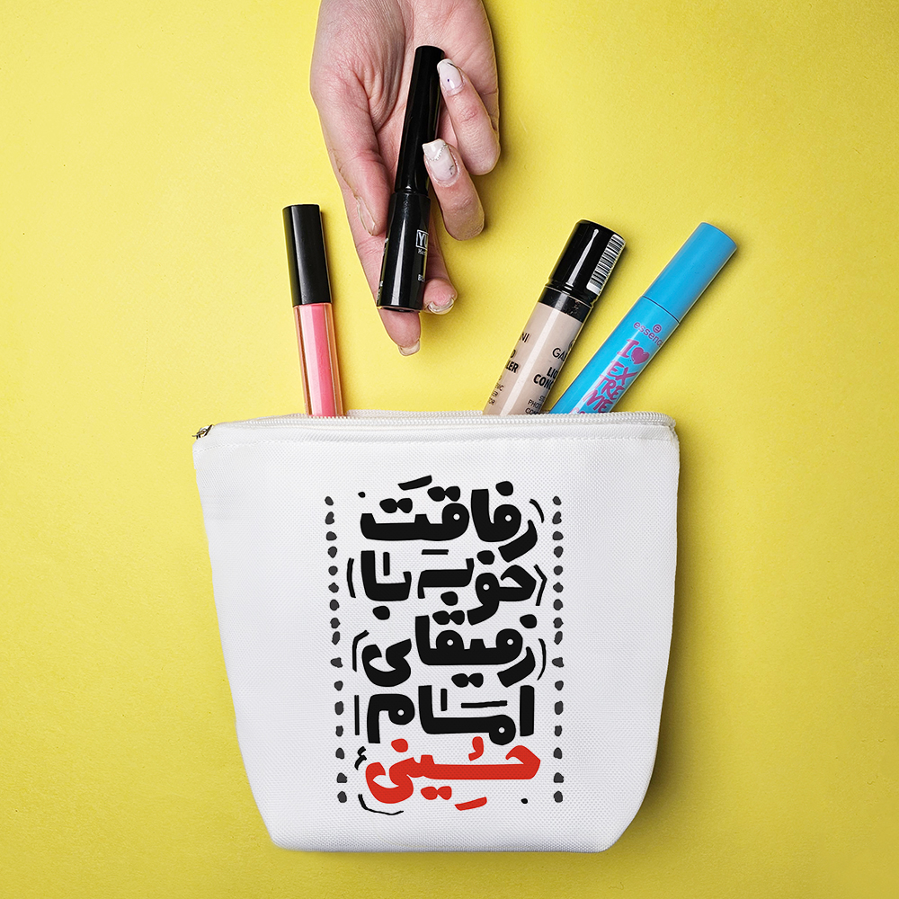 زیبایی در کنار کارایی، میتواند بهترین همراه برای وسایل روزمره باشد. در طراحی کیف لوازم آرایش خندالو طرح رفاقت خوبه با رفیقای امام حسینی این اصل در نظر گرفته شده تا محصولی شیک، کاربردی و بادوام در اختیار شما باشد. این کیفها از پارچهی هازان مقاوم ساخته شدهاند که علاوه بر ظاهر زیبا، استحکام بالایی نیز دارد. ابعاد کیف لوازم آرایش خندالو طرح رفاقت خوبه با رفیقای امام حسینی ۲۲×۱۶ سانتیمتر است و طراحی کف پاکتی ۸ سانتیمتری آن، باعث میشود فضای بیشتری برای وسایل خود داشته باشید و فرم کیف بهتر حفظ شود. برای افزایش دوام و استحکام، داخل آن آسترکشی شده است. چاپ روی کیف بهصورت دیجیتال و باکیفیت بالا انجام شده که باعث دوام و ماندگاری طرحها میشود. این محصول کاملاً قابل شستشو است و میتوانید بدون نگرانی از تغییر رنگ یا آسیبدیدگی، آن را هم با دست و هم با ماشین لباسشویی بشویید. یکی دیگر از ویژگیهای کیف لوازم آرایش خندالو طرح رفاقت خوبه با رفیقای امام حسینی، بستهبندی شیک و زیبا آن است که آن را به گزینهای ایدهآل برای هدیه دادن تبدیل میکند. این کیف نهتنها برای نگهداری لوازم آرایشی و بهداشتی، بلکه برای سایر وسایل ضروری نیز مناسب است. محصولی که در کنار کاربردی بودن، به سبک زندگی شما زیبایی و نظم میبخشد. کیف لوازم آرایش خندالو، همراهی زیبا و ماندگار برای شما!