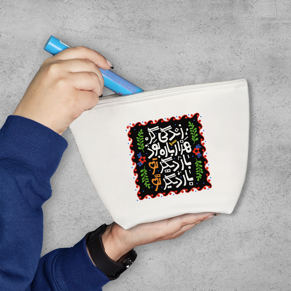 زیبایی در کنار کارایی، میتواند بهترین همراه برای وسایل روزمره باشد. در طراحی کیف لوازم آرایش خندالو طرح زندگی گر هزار باره بود بار دیگر تو بار دیگر تو این اصل در نظر گرفته شده تا محصولی شیک، کاربردی و بادوام در اختیار شما باشد. این کیفها از پارچهی هازان مقاوم ساخته شدهاند که علاوه بر ظاهر زیبا، استحکام بالایی نیز دارد. ابعاد کیف لوازم آرایش خندالو طرح زندگی گر هزار باره بود بار دیگر تو بار دیگر تو ۲۲×۱۶ سانتیمتر است و طراحی کف پاکتی ۸ سانتیمتری آن، باعث میشود فضای بیشتری برای وسایل خود داشته باشید و فرم کیف بهتر حفظ شود. برای افزایش دوام و استحکام، داخل آن آسترکشی شده است. چاپ روی کیف بهصورت دیجیتال و باکیفیت بالا انجام شده که باعث دوام و ماندگاری طرحها میشود. این محصول کاملاً قابل شستشو است و میتوانید بدون نگرانی از تغییر رنگ یا آسیبدیدگی، آن را هم با دست و هم با ماشین لباسشویی بشویید. یکی دیگر از ویژگیهای کیف لوازم آرایش خندالو طرح زندگی گر هزار باره بود بار دیگر تو بار دیگر تو، بستهبندی شیک و زیبا آن است که آن را به گزینهای ایدهآل برای هدیه دادن تبدیل میکند. این کیف نهتنها برای نگهداری لوازم آرایشی و بهداشتی، بلکه برای سایر وسایل ضروری نیز مناسب است. محصولی که در کنار کاربردی بودن، به سبک زندگی شما زیبایی و نظم میبخشد. کیف لوازم آرایش خندالو، همراهی زیبا و ماندگار برای شما!