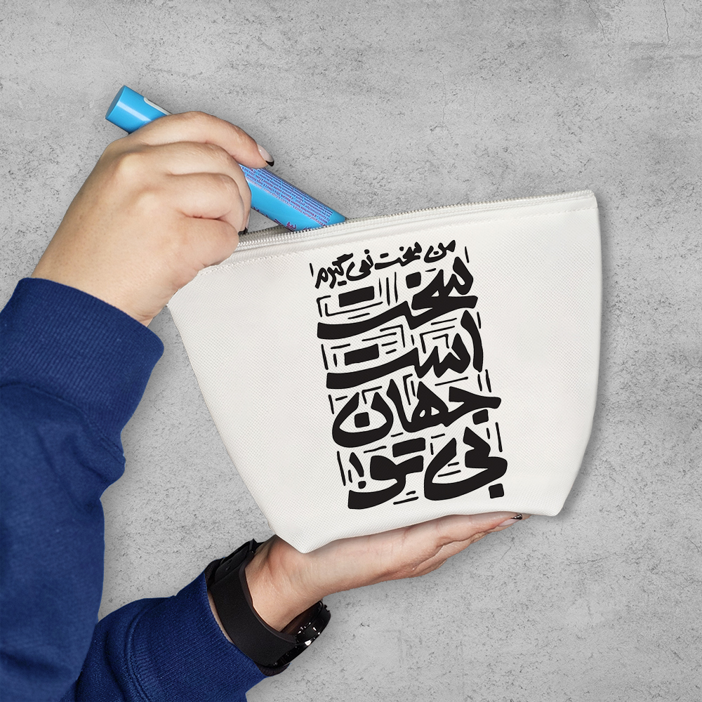 زیبایی در کنار کارایی، میتواند بهترین همراه برای وسایل روزمره باشد. در طراحی کیف لوازم آرایش خندالو طرح سخت است جهان بی تو این اصل در نظر گرفته شده تا محصولی شیک، کاربردی و بادوام در اختیار شما باشد. این کیفها از پارچهی هازان مقاوم ساخته شدهاند که علاوه بر ظاهر زیبا، استحکام بالایی نیز دارد. ابعاد کیف لوازم آرایش خندالو طرح سخت است جهان بی تو ۲۲×۱۶ سانتیمتر است و طراحی کف پاکتی ۸ سانتیمتری آن، باعث میشود فضای بیشتری برای وسایل خود داشته باشید و فرم کیف بهتر حفظ شود. برای افزایش دوام و استحکام، داخل آن آسترکشی شده است. چاپ روی کیف بهصورت دیجیتال و باکیفیت بالا انجام شده که باعث دوام و ماندگاری طرحها میشود. این محصول کاملاً قابل شستشو است و میتوانید بدون نگرانی از تغییر رنگ یا آسیبدیدگی، آن را هم با دست و هم با ماشین لباسشویی بشویید. یکی دیگر از ویژگیهای کیف لوازم آرایش خندالو طرح سخت است جهان بی تو، بستهبندی شیک و زیبا آن است که آن را به گزینهای ایدهآل برای هدیه دادن تبدیل میکند. این کیف نهتنها برای نگهداری لوازم آرایشی و بهداشتی، بلکه برای سایر وسایل ضروری نیز مناسب است. محصولی که در کنار کاربردی بودن، به سبک زندگی شما زیبایی و نظم میبخشد. کیف لوازم آرایش خندالو، همراهی زیبا و ماندگار برای شما!