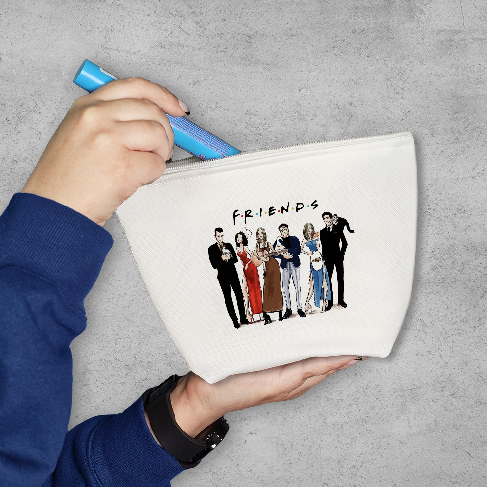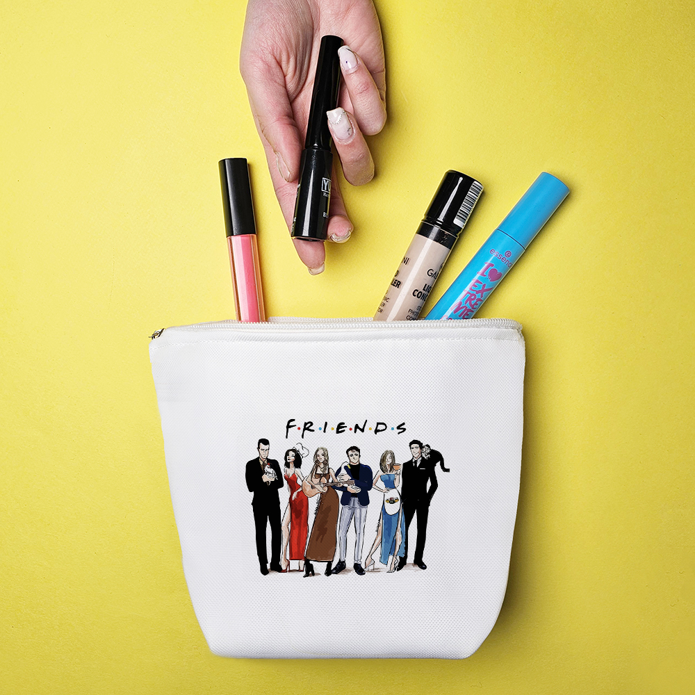 زیبایی در کنار کارایی، می‌تواند بهترین همراه برای وسایل روزمره باشد. در طراحی کیف لوازم آرایش خندالو طرح سریال فرندز Friends این اصل در نظر گرفته شده تا محصولی شیک، کاربردی و بادوام در اختیار شما باشد. این کیف‌ها از پارچه‌ی هازان مقاوم ساخته شده‌اند که علاوه بر ظاهر زیبا، استحکام بالایی نیز دارد. ابعاد کیف لوازم آرایش خندالو طرح سریال فرندز Friends ۲۲×۱۶ سانتی‌متر است و طراحی کف پاکتی ۸ سانتی‌متری آن، باعث می‌شود فضای بیشتری برای وسایل خود داشته باشید و فرم کیف بهتر حفظ شود. برای افزایش دوام و استحکام، داخل آن آسترکشی شده است. چاپ روی کیف به‌صورت دیجیتال و باکیفیت بالا انجام شده که باعث دوام و ماندگاری طرح‌ها می‌شود. این محصول کاملاً قابل شستشو است و می‌توانید بدون نگرانی از تغییر رنگ یا آسیب‌دیدگی، آن را هم با دست و هم با ماشین لباسشویی بشویید. یکی دیگر از ویژگی‌های کیف لوازم آرایش خندالو طرح سریال فرندز Friends، بسته‌بندی شیک و زیبا آن است که آن را به گزینه‌ای ایده‌آل برای هدیه دادن تبدیل می‌کند. این کیف نه‌تنها برای نگهداری لوازم آرایشی و بهداشتی، بلکه برای سایر وسایل ضروری نیز مناسب است. محصولی که در کنار کاربردی بودن، به سبک زندگی شما زیبایی و نظم می‌بخشد. کیف لوازم آرایش خندالو، همراهی زیبا و ماندگار برای شما!