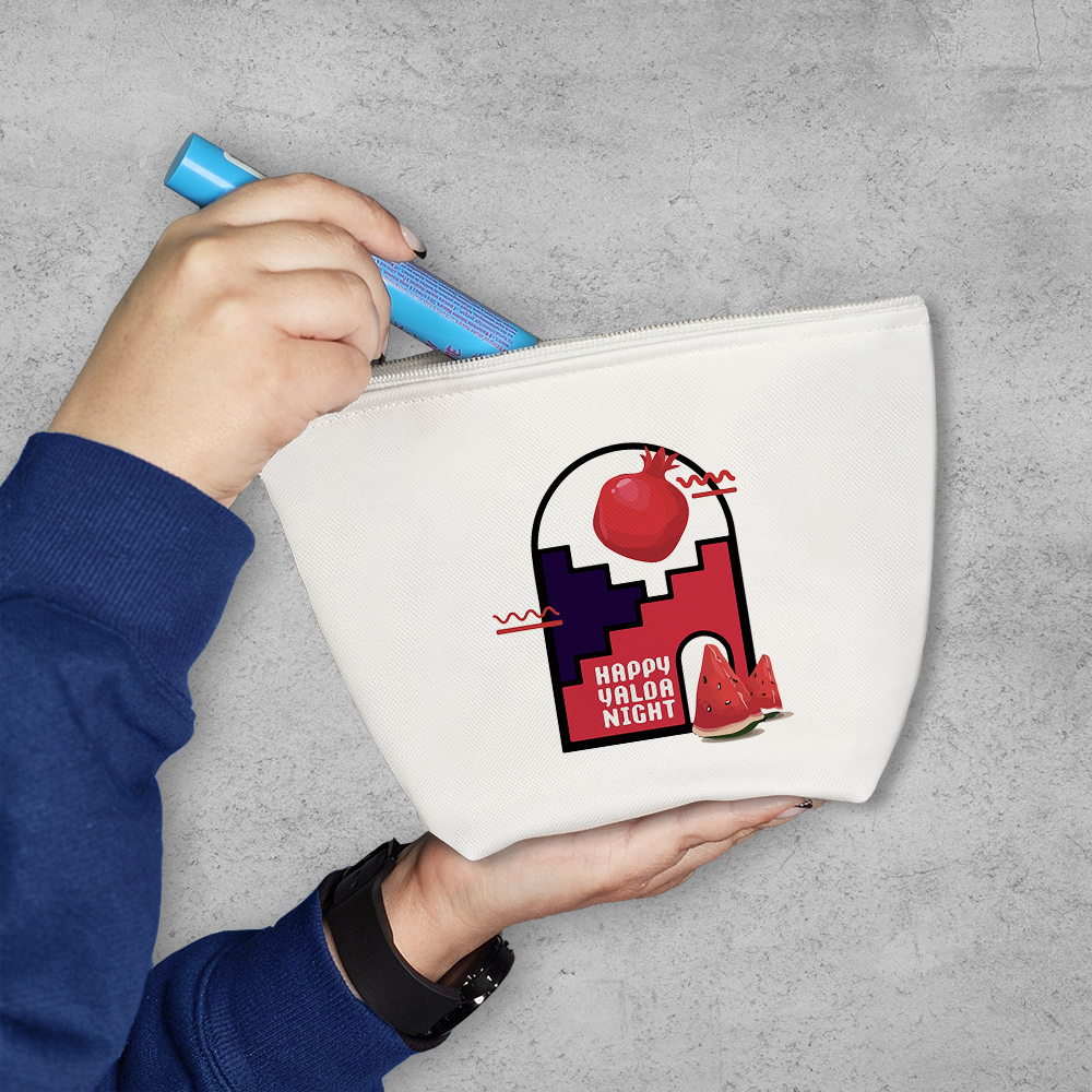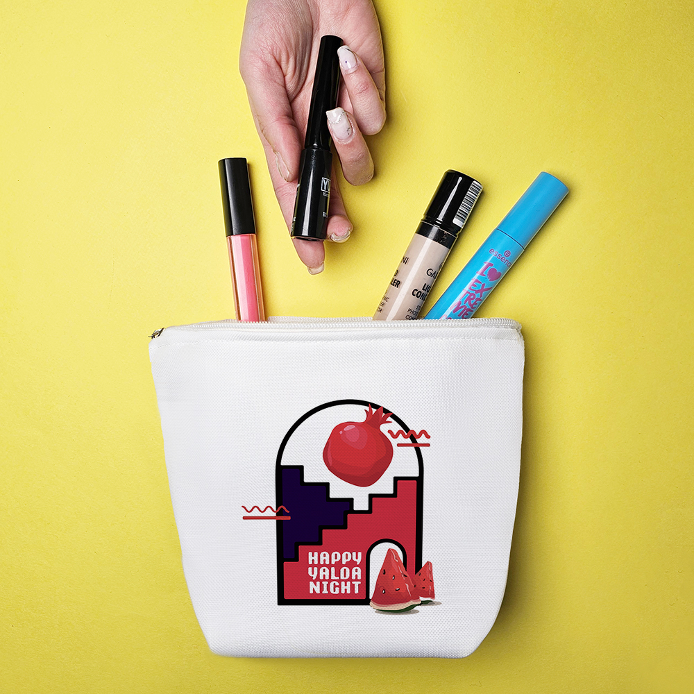 زیبایی در کنار کارایی، می‌تواند بهترین همراه برای وسایل روزمره باشد. در طراحی کیف لوازم آرایش خندالو طرح شب یلدا این اصل در نظر گرفته شده تا محصولی شیک، کاربردی و بادوام در اختیار شما باشد. این کیف‌ها از پارچه‌ی هازان مقاوم ساخته شده‌اند که علاوه بر ظاهر زیبا، استحکام بالایی نیز دارد. ابعاد کیف لوازم آرایش خندالو طرح شب یلدا ۲۲×۱۶ سانتی‌متر است و طراحی کف پاکتی ۸ سانتی‌متری آن، باعث می‌شود فضای بیشتری برای وسایل خود داشته باشید و فرم کیف بهتر حفظ شود. برای افزایش دوام و استحکام، داخل آن آسترکشی شده است. چاپ روی کیف به‌صورت دیجیتال و باکیفیت بالا انجام شده که باعث دوام و ماندگاری طرح‌ها می‌شود. این محصول کاملاً قابل شستشو است و می‌توانید بدون نگرانی از تغییر رنگ یا آسیب‌دیدگی، آن را هم با دست و هم با ماشین لباسشویی بشویید. یکی دیگر از ویژگی‌های کیف لوازم آرایش خندالو طرح شب یلدا، بسته‌بندی شیک و زیبا آن است که آن را به گزینه‌ای ایده‌آل برای هدیه دادن تبدیل می‌کند. این کیف نه‌تنها برای نگهداری لوازم آرایشی و بهداشتی، بلکه برای سایر وسایل ضروری نیز مناسب است. محصولی که در کنار کاربردی بودن، به سبک زندگی شما زیبایی و نظم می‌بخشد. کیف لوازم آرایش خندالو، همراهی زیبا و ماندگار برای شما!