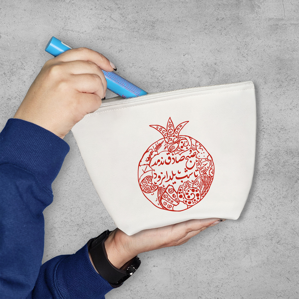 زیبایی در کنار کارایی، می‌تواند بهترین همراه برای وسایل روزمره باشد. در طراحی کیف لوازم آرایش خندالو طرح شب یلدا این اصل در نظر گرفته شده تا محصولی شیک، کاربردی و بادوام در اختیار شما باشد. این کیف‌ها از پارچه‌ی هازان مقاوم ساخته شده‌اند که علاوه بر ظاهر زیبا، استحکام بالایی نیز دارد. ابعاد کیف لوازم آرایش خندالو طرح شب یلدا ۲۲×۱۶ سانتی‌متر است و طراحی کف پاکتی ۸ سانتی‌متری آن، باعث می‌شود فضای بیشتری برای وسایل خود داشته باشید و فرم کیف بهتر حفظ شود. برای افزایش دوام و استحکام، داخل آن آسترکشی شده است. چاپ روی کیف به‌صورت دیجیتال و باکیفیت بالا انجام شده که باعث دوام و ماندگاری طرح‌ها می‌شود. این محصول کاملاً قابل شستشو است و می‌توانید بدون نگرانی از تغییر رنگ یا آسیب‌دیدگی، آن را هم با دست و هم با ماشین لباسشویی بشویید. یکی دیگر از ویژگی‌های کیف لوازم آرایش خندالو طرح شب یلدا، بسته‌بندی شیک و زیبا آن است که آن را به گزینه‌ای ایده‌آل برای هدیه دادن تبدیل می‌کند. این کیف نه‌تنها برای نگهداری لوازم آرایشی و بهداشتی، بلکه برای سایر وسایل ضروری نیز مناسب است. محصولی که در کنار کاربردی بودن، به سبک زندگی شما زیبایی و نظم می‌بخشد. کیف لوازم آرایش خندالو، همراهی زیبا و ماندگار برای شما!
