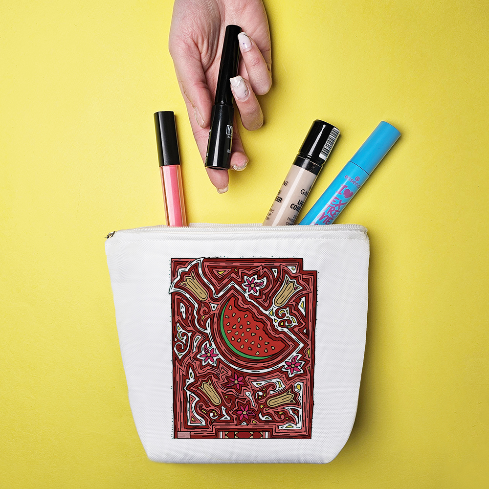 زیبایی در کنار کارایی، می‌تواند بهترین همراه برای وسایل روزمره باشد. در طراحی کیف لوازم آرایش خندالو طرح شب یلدا این اصل در نظر گرفته شده تا محصولی شیک، کاربردی و بادوام در اختیار شما باشد. این کیف‌ها از پارچه‌ی هازان مقاوم ساخته شده‌اند که علاوه بر ظاهر زیبا، استحکام بالایی نیز دارد. ابعاد کیف لوازم آرایش خندالو طرح شب یلدا ۲۲×۱۶ سانتی‌متر است و طراحی کف پاکتی ۸ سانتی‌متری آن، باعث می‌شود فضای بیشتری برای وسایل خود داشته باشید و فرم کیف بهتر حفظ شود. برای افزایش دوام و استحکام، داخل آن آسترکشی شده است. چاپ روی کیف به‌صورت دیجیتال و باکیفیت بالا انجام شده که باعث دوام و ماندگاری طرح‌ها می‌شود. این محصول کاملاً قابل شستشو است و می‌توانید بدون نگرانی از تغییر رنگ یا آسیب‌دیدگی، آن را هم با دست و هم با ماشین لباسشویی بشویید. یکی دیگر از ویژگی‌های کیف لوازم آرایش خندالو طرح شب یلدا، بسته‌بندی شیک و زیبا آن است که آن را به گزینه‌ای ایده‌آل برای هدیه دادن تبدیل می‌کند. این کیف نه‌تنها برای نگهداری لوازم آرایشی و بهداشتی، بلکه برای سایر وسایل ضروری نیز مناسب است. محصولی که در کنار کاربردی بودن، به سبک زندگی شما زیبایی و نظم می‌بخشد. کیف لوازم آرایش خندالو، همراهی زیبا و ماندگار برای شما!
