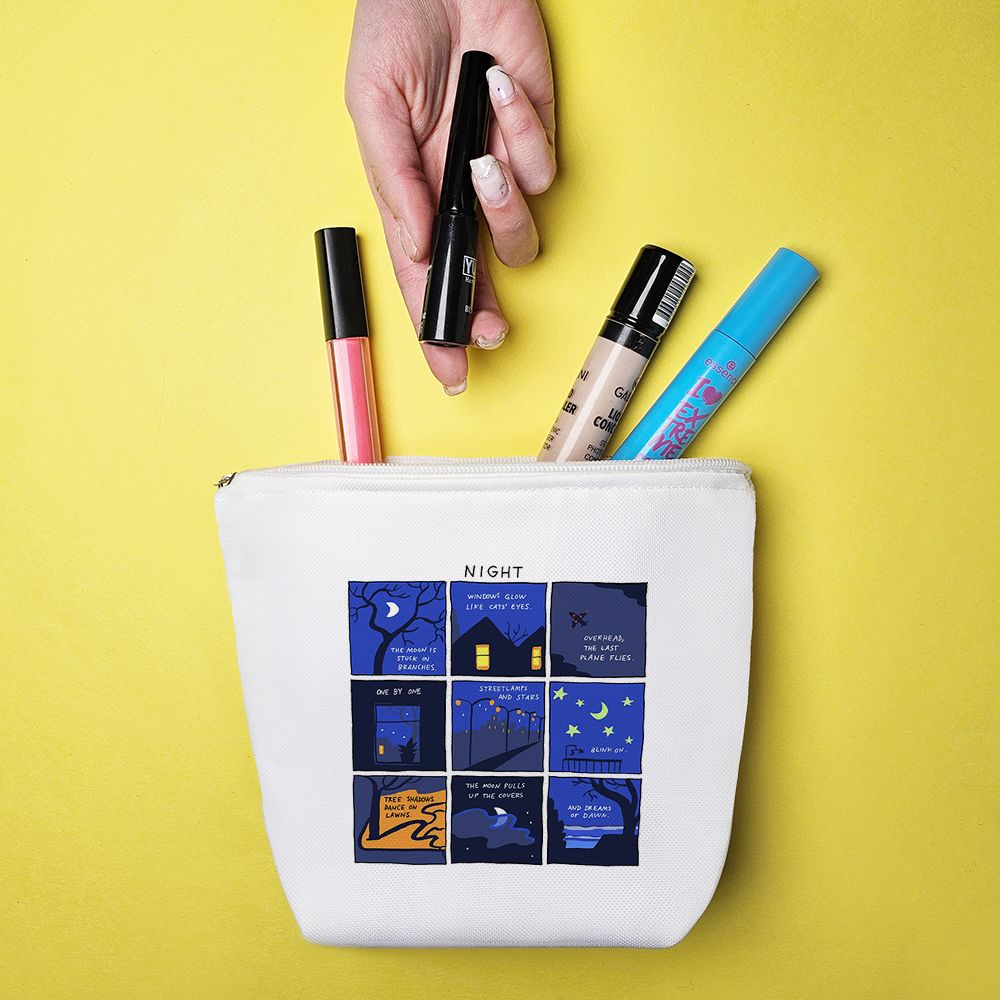 زیبایی در کنار کارایی، می‌تواند بهترین همراه برای وسایل روزمره باشد. در طراحی کیف لوازم آرایش خندالو طرح شب Night این اصل در نظر گرفته شده تا محصولی شیک، کاربردی و بادوام در اختیار شما باشد. این کیف‌ها از پارچه‌ی هازان مقاوم ساخته شده‌اند که علاوه بر ظاهر زیبا، استحکام بالایی نیز دارد. ابعاد کیف لوازم آرایش خندالو طرح شب Night ۲۲×۱۶ سانتی‌متر است و طراحی کف پاکتی ۸ سانتی‌متری آن، باعث می‌شود فضای بیشتری برای وسایل خود داشته باشید و فرم کیف بهتر حفظ شود. برای افزایش دوام و استحکام، داخل آن آسترکشی شده است. چاپ روی کیف به‌صورت دیجیتال و باکیفیت بالا انجام شده که باعث دوام و ماندگاری طرح‌ها می‌شود. این محصول کاملاً قابل شستشو است و می‌توانید بدون نگرانی از تغییر رنگ یا آسیب‌دیدگی، آن را هم با دست و هم با ماشین لباسشویی بشویید. یکی دیگر از ویژگی‌های کیف لوازم آرایش خندالو طرح شب Night، بسته‌بندی شیک و زیبا آن است که آن را به گزینه‌ای ایده‌آل برای هدیه دادن تبدیل می‌کند. این کیف نه‌تنها برای نگهداری لوازم آرایشی و بهداشتی، بلکه برای سایر وسایل ضروری نیز مناسب است. محصولی که در کنار کاربردی بودن، به سبک زندگی شما زیبایی و نظم می‌بخشد. کیف لوازم آرایش خندالو، همراهی زیبا و ماندگار برای شما!