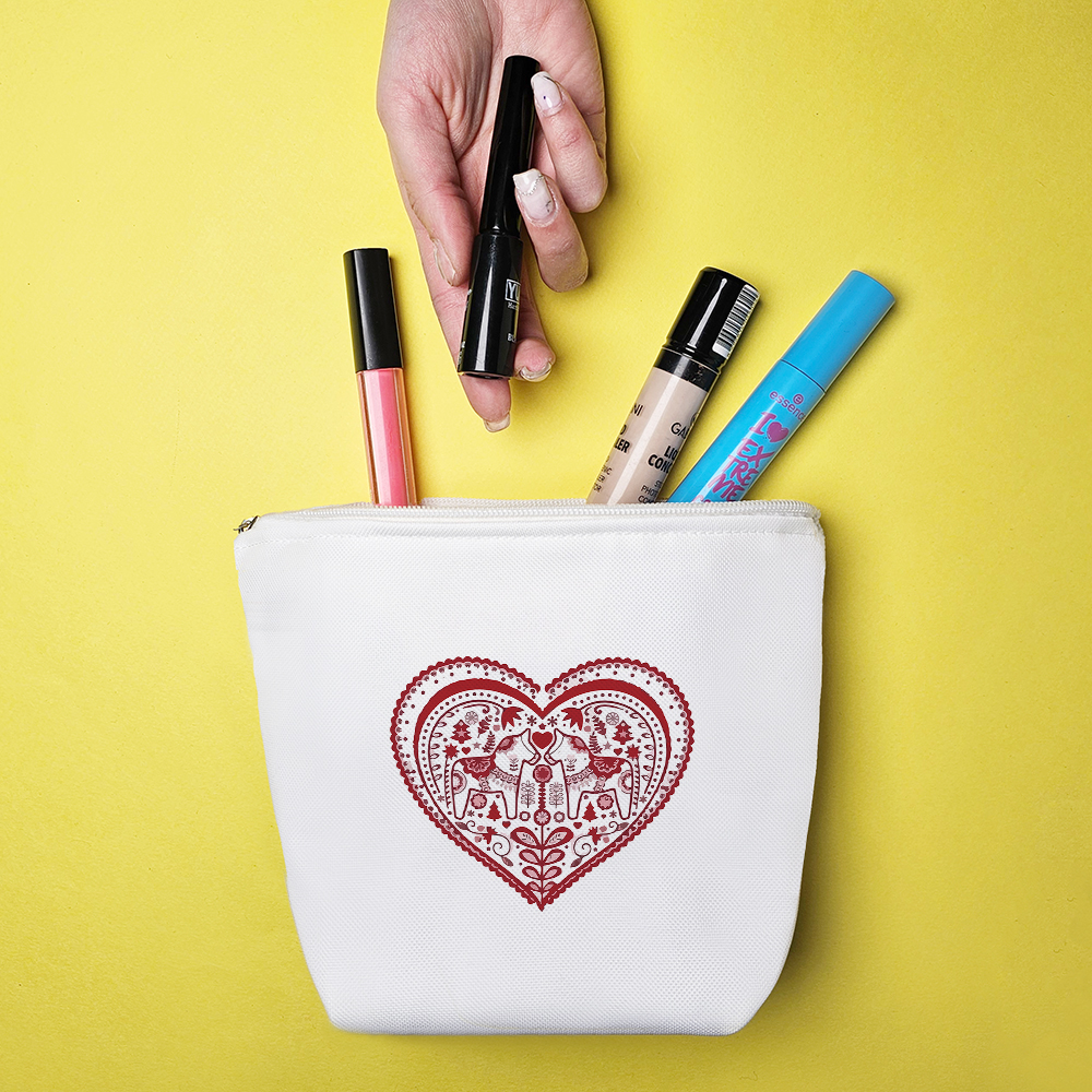 زیبایی در کنار کارایی، می‌تواند بهترین همراه برای وسایل روزمره باشد. در طراحی کیف لوازم آرایش خندالو طرح قلب قرمز این اصل در نظر گرفته شده تا محصولی شیک، کاربردی و بادوام در اختیار شما باشد. این کیف‌ها از پارچه‌ی هازان مقاوم ساخته شده‌اند که علاوه بر ظاهر زیبا، استحکام بالایی نیز دارد. ابعاد کیف لوازم آرایش خندالو طرح قلب قرمز ۲۲×۱۶ سانتی‌متر است و طراحی کف پاکتی ۸ سانتی‌متری آن، باعث می‌شود فضای بیشتری برای وسایل خود داشته باشید و فرم کیف بهتر حفظ شود. برای افزایش دوام و استحکام، داخل آن آسترکشی شده است. چاپ روی کیف به‌صورت دیجیتال و باکیفیت بالا انجام شده که باعث دوام و ماندگاری طرح‌ها می‌شود. این محصول کاملاً قابل شستشو است و می‌توانید بدون نگرانی از تغییر رنگ یا آسیب‌دیدگی، آن را هم با دست و هم با ماشین لباسشویی بشویید. یکی دیگر از ویژگی‌های کیف لوازم آرایش خندالو طرح قلب قرمز، بسته‌بندی شیک و زیبا آن است که آن را به گزینه‌ای ایده‌آل برای هدیه دادن تبدیل می‌کند. این کیف نه‌تنها برای نگهداری لوازم آرایشی و بهداشتی، بلکه برای سایر وسایل ضروری نیز مناسب است. محصولی که در کنار کاربردی بودن، به سبک زندگی شما زیبایی و نظم می‌بخشد. کیف لوازم آرایش خندالو، همراهی زیبا و ماندگار برای شما!