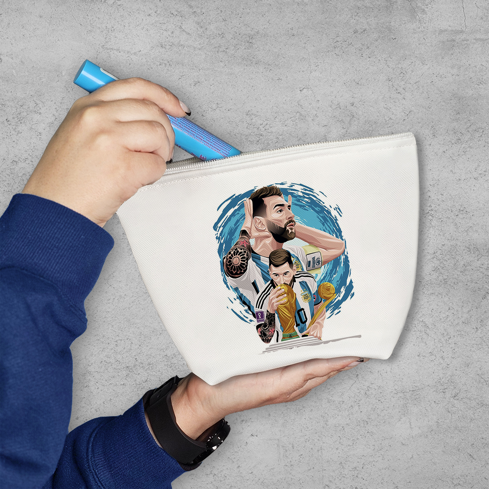 زیبایی در کنار کارایی، می‌تواند بهترین همراه برای وسایل روزمره باشد. در طراحی کیف لوازم آرایش خندالو طرح لیونل مسی این اصل در نظر گرفته شده تا محصولی شیک، کاربردی و بادوام در اختیار شما باشد. این کیف‌ها از پارچه‌ی هازان مقاوم ساخته شده‌اند که علاوه بر ظاهر زیبا، استحکام بالایی نیز دارد. ابعاد کیف لوازم آرایش خندالو طرح لیونل مسی ۲۲×۱۶ سانتی‌متر است و طراحی کف پاکتی ۸ سانتی‌متری آن، باعث می‌شود فضای بیشتری برای وسایل خود داشته باشید و فرم کیف بهتر حفظ شود. برای افزایش دوام و استحکام، داخل آن آسترکشی شده است. چاپ روی کیف به‌صورت دیجیتال و باکیفیت بالا انجام شده که باعث دوام و ماندگاری طرح‌ها می‌شود. این محصول کاملاً قابل شستشو است و می‌توانید بدون نگرانی از تغییر رنگ یا آسیب‌دیدگی، آن را هم با دست و هم با ماشین لباسشویی بشویید. یکی دیگر از ویژگی‌های کیف لوازم آرایش خندالو طرح لیونل مسی، بسته‌بندی شیک و زیبا آن است که آن را به گزینه‌ای ایده‌آل برای هدیه دادن تبدیل می‌کند. این کیف نه‌تنها برای نگهداری لوازم آرایشی و بهداشتی، بلکه برای سایر وسایل ضروری نیز مناسب است. محصولی که در کنار کاربردی بودن، به سبک زندگی شما زیبایی و نظم می‌بخشد. کیف لوازم آرایش خندالو، همراهی زیبا و ماندگار برای شما!