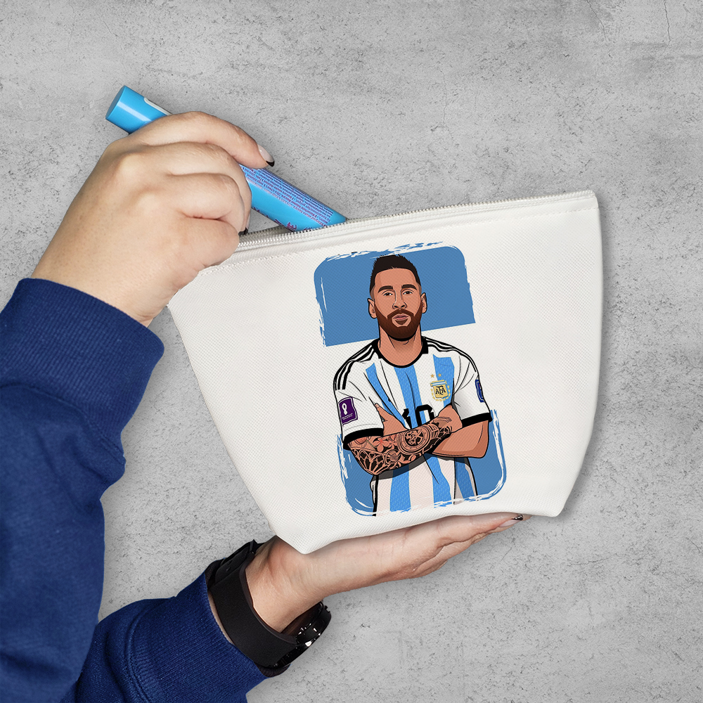 زیبایی در کنار کارایی، می‌تواند بهترین همراه برای وسایل روزمره باشد. در طراحی کیف لوازم آرایش خندالو طرح لیونل مسی این اصل در نظر گرفته شده تا محصولی شیک، کاربردی و بادوام در اختیار شما باشد. این کیف‌ها از پارچه‌ی هازان مقاوم ساخته شده‌اند که علاوه بر ظاهر زیبا، استحکام بالایی نیز دارد. ابعاد کیف لوازم آرایش خندالو طرح لیونل مسی ۲۲×۱۶ سانتی‌متر است و طراحی کف پاکتی ۸ سانتی‌متری آن، باعث می‌شود فضای بیشتری برای وسایل خود داشته باشید و فرم کیف بهتر حفظ شود. برای افزایش دوام و استحکام، داخل آن آسترکشی شده است. چاپ روی کیف به‌صورت دیجیتال و باکیفیت بالا انجام شده که باعث دوام و ماندگاری طرح‌ها می‌شود. این محصول کاملاً قابل شستشو است و می‌توانید بدون نگرانی از تغییر رنگ یا آسیب‌دیدگی، آن را هم با دست و هم با ماشین لباسشویی بشویید. یکی دیگر از ویژگی‌های کیف لوازم آرایش خندالو طرح لیونل مسی، بسته‌بندی شیک و زیبا آن است که آن را به گزینه‌ای ایده‌آل برای هدیه دادن تبدیل می‌کند. این کیف نه‌تنها برای نگهداری لوازم آرایشی و بهداشتی، بلکه برای سایر وسایل ضروری نیز مناسب است. محصولی که در کنار کاربردی بودن، به سبک زندگی شما زیبایی و نظم می‌بخشد. کیف لوازم آرایش خندالو، همراهی زیبا و ماندگار برای شما!