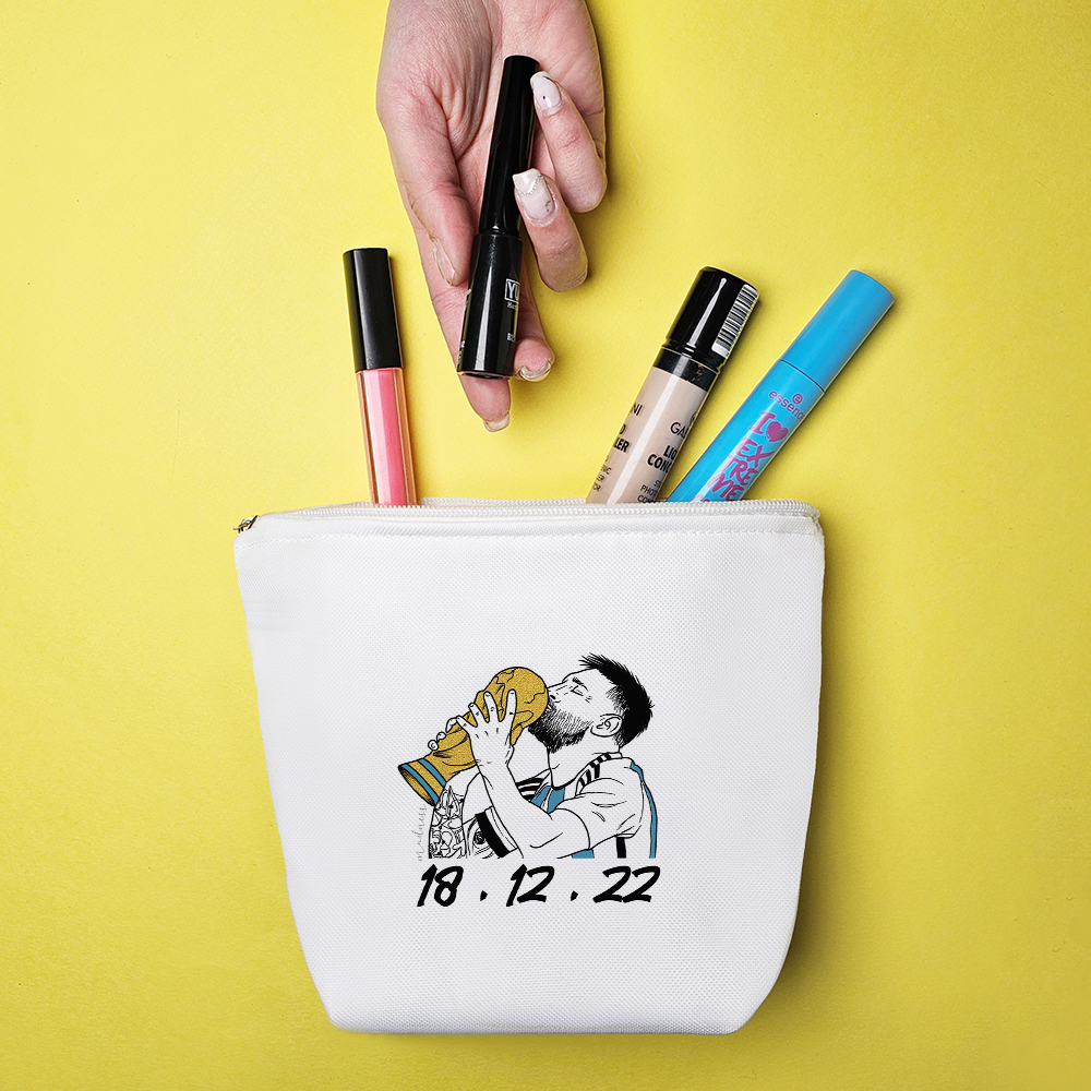 زیبایی در کنار کارایی، می‌تواند بهترین همراه برای وسایل روزمره باشد. در طراحی کیف لوازم آرایش خندالو طرح لیونل مسی این اصل در نظر گرفته شده تا محصولی شیک، کاربردی و بادوام در اختیار شما باشد. این کیف‌ها از پارچه‌ی هازان مقاوم ساخته شده‌اند که علاوه بر ظاهر زیبا، استحکام بالایی نیز دارد. ابعاد کیف لوازم آرایش خندالو طرح لیونل مسی ۲۲×۱۶ سانتی‌متر است و طراحی کف پاکتی ۸ سانتی‌متری آن، باعث می‌شود فضای بیشتری برای وسایل خود داشته باشید و فرم کیف بهتر حفظ شود. برای افزایش دوام و استحکام، داخل آن آسترکشی شده است. چاپ روی کیف به‌صورت دیجیتال و باکیفیت بالا انجام شده که باعث دوام و ماندگاری طرح‌ها می‌شود. این محصول کاملاً قابل شستشو است و می‌توانید بدون نگرانی از تغییر رنگ یا آسیب‌دیدگی، آن را هم با دست و هم با ماشین لباسشویی بشویید. یکی دیگر از ویژگی‌های کیف لوازم آرایش خندالو طرح لیونل مسی، بسته‌بندی شیک و زیبا آن است که آن را به گزینه‌ای ایده‌آل برای هدیه دادن تبدیل می‌کند. این کیف نه‌تنها برای نگهداری لوازم آرایشی و بهداشتی، بلکه برای سایر وسایل ضروری نیز مناسب است. محصولی که در کنار کاربردی بودن، به سبک زندگی شما زیبایی و نظم می‌بخشد. کیف لوازم آرایش خندالو، همراهی زیبا و ماندگار برای شما!