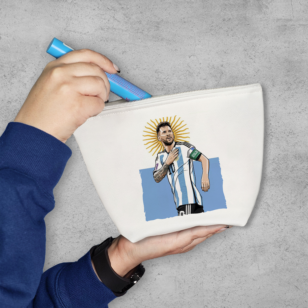 زیبایی در کنار کارایی، می‌تواند بهترین همراه برای وسایل روزمره باشد. در طراحی کیف لوازم آرایش خندالو طرح لیونل مسی این اصل در نظر گرفته شده تا محصولی شیک، کاربردی و بادوام در اختیار شما باشد. این کیف‌ها از پارچه‌ی هازان مقاوم ساخته شده‌اند که علاوه بر ظاهر زیبا، استحکام بالایی نیز دارد. ابعاد کیف لوازم آرایش خندالو طرح لیونل مسی ۲۲×۱۶ سانتی‌متر است و طراحی کف پاکتی ۸ سانتی‌متری آن، باعث می‌شود فضای بیشتری برای وسایل خود داشته باشید و فرم کیف بهتر حفظ شود. برای افزایش دوام و استحکام، داخل آن آسترکشی شده است. چاپ روی کیف به‌صورت دیجیتال و باکیفیت بالا انجام شده که باعث دوام و ماندگاری طرح‌ها می‌شود. این محصول کاملاً قابل شستشو است و می‌توانید بدون نگرانی از تغییر رنگ یا آسیب‌دیدگی، آن را هم با دست و هم با ماشین لباسشویی بشویید. یکی دیگر از ویژگی‌های کیف لوازم آرایش خندالو طرح لیونل مسی، بسته‌بندی شیک و زیبا آن است که آن را به گزینه‌ای ایده‌آل برای هدیه دادن تبدیل می‌کند. این کیف نه‌تنها برای نگهداری لوازم آرایشی و بهداشتی، بلکه برای سایر وسایل ضروری نیز مناسب است. محصولی که در کنار کاربردی بودن، به سبک زندگی شما زیبایی و نظم می‌بخشد. کیف لوازم آرایش خندالو، همراهی زیبا و ماندگار برای شما!