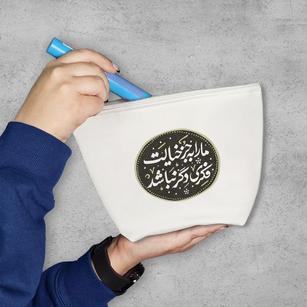 زیبایی در کنار کارایی، میتواند بهترین همراه برای وسایل روزمره باشد. در طراحی کیف لوازم آرایش خندالو طرح ما را به جز خیالت فکری دگر نباشد این اصل در نظر گرفته شده تا محصولی شیک، کاربردی و بادوام در اختیار شما باشد. این کیفها از پارچهی هازان مقاوم ساخته شدهاند که علاوه بر ظاهر زیبا، استحکام بالایی نیز دارد. ابعاد کیف لوازم آرایش خندالو طرح ما را به جز خیالت فکری دگر نباشد ۲۲×۱۶ سانتیمتر است و طراحی کف پاکتی ۸ سانتیمتری آن، باعث میشود فضای بیشتری برای وسایل خود داشته باشید و فرم کیف بهتر حفظ شود. برای افزایش دوام و استحکام، داخل آن آسترکشی شده است. چاپ روی کیف بهصورت دیجیتال و باکیفیت بالا انجام شده که باعث دوام و ماندگاری طرحها میشود. این محصول کاملاً قابل شستشو است و میتوانید بدون نگرانی از تغییر رنگ یا آسیبدیدگی، آن را هم با دست و هم با ماشین لباسشویی بشویید. یکی دیگر از ویژگیهای کیف لوازم آرایش خندالو طرح ما را به جز خیالت فکری دگر نباشد، بستهبندی شیک و زیبا آن است که آن را به گزینهای ایدهآل برای هدیه دادن تبدیل میکند. این کیف نهتنها برای نگهداری لوازم آرایشی و بهداشتی، بلکه برای سایر وسایل ضروری نیز مناسب است. محصولی که در کنار کاربردی بودن، به سبک زندگی شما زیبایی و نظم میبخشد. کیف لوازم آرایش خندالو، همراهی زیبا و ماندگار برای شما!