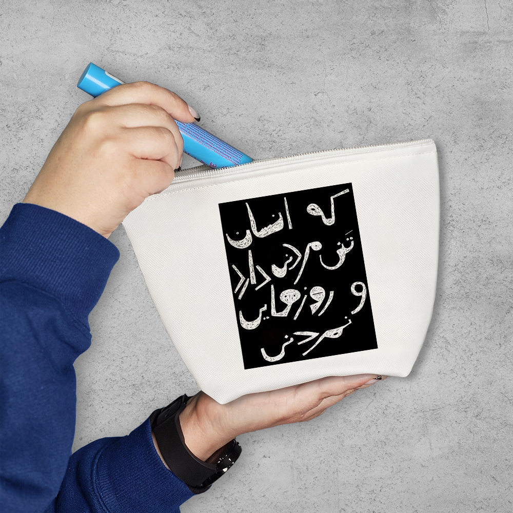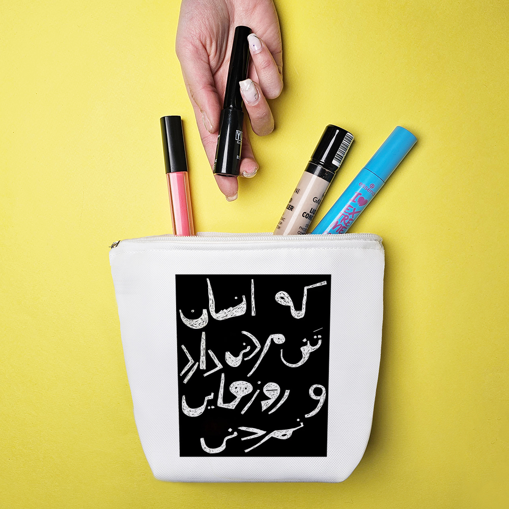 زیبایی در کنار کارایی، می‌تواند بهترین همراه برای وسایل روزمره باشد. در طراحی کیف لوازم آرایش خندالو طرح متن نوشته این اصل در نظر گرفته شده تا محصولی شیک، کاربردی و بادوام در اختیار شما باشد. این کیف‌ها از پارچه‌ی هازان مقاوم ساخته شده‌اند که علاوه بر ظاهر زیبا، استحکام بالایی نیز دارد. ابعاد کیف لوازم آرایش خندالو طرح متن نوشته ۲۲×۱۶ سانتی‌متر است و طراحی کف پاکتی ۸ سانتی‌متری آن، باعث می‌شود فضای بیشتری برای وسایل خود داشته باشید و فرم کیف بهتر حفظ شود. برای افزایش دوام و استحکام، داخل آن آسترکشی شده است. چاپ روی کیف به‌صورت دیجیتال و باکیفیت بالا انجام شده که باعث دوام و ماندگاری طرح‌ها می‌شود. این محصول کاملاً قابل شستشو است و می‌توانید بدون نگرانی از تغییر رنگ یا آسیب‌دیدگی، آن را هم با دست و هم با ماشین لباسشویی بشویید. یکی دیگر از ویژگی‌های کیف لوازم آرایش خندالو طرح متن نوشته، بسته‌بندی شیک و زیبا آن است که آن را به گزینه‌ای ایده‌آل برای هدیه دادن تبدیل می‌کند. این کیف نه‌تنها برای نگهداری لوازم آرایشی و بهداشتی، بلکه برای سایر وسایل ضروری نیز مناسب است. محصولی که در کنار کاربردی بودن، به سبک زندگی شما زیبایی و نظم می‌بخشد. کیف لوازم آرایش خندالو، همراهی زیبا و ماندگار برای شما!