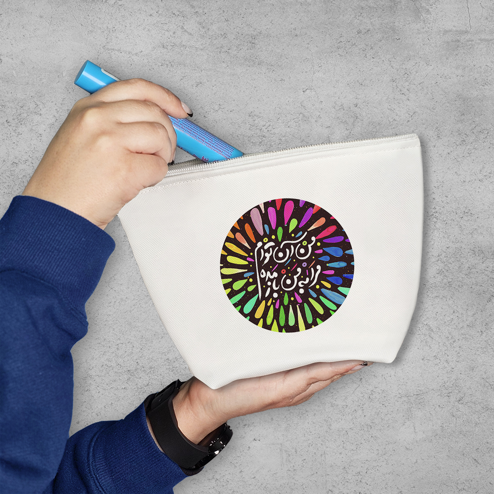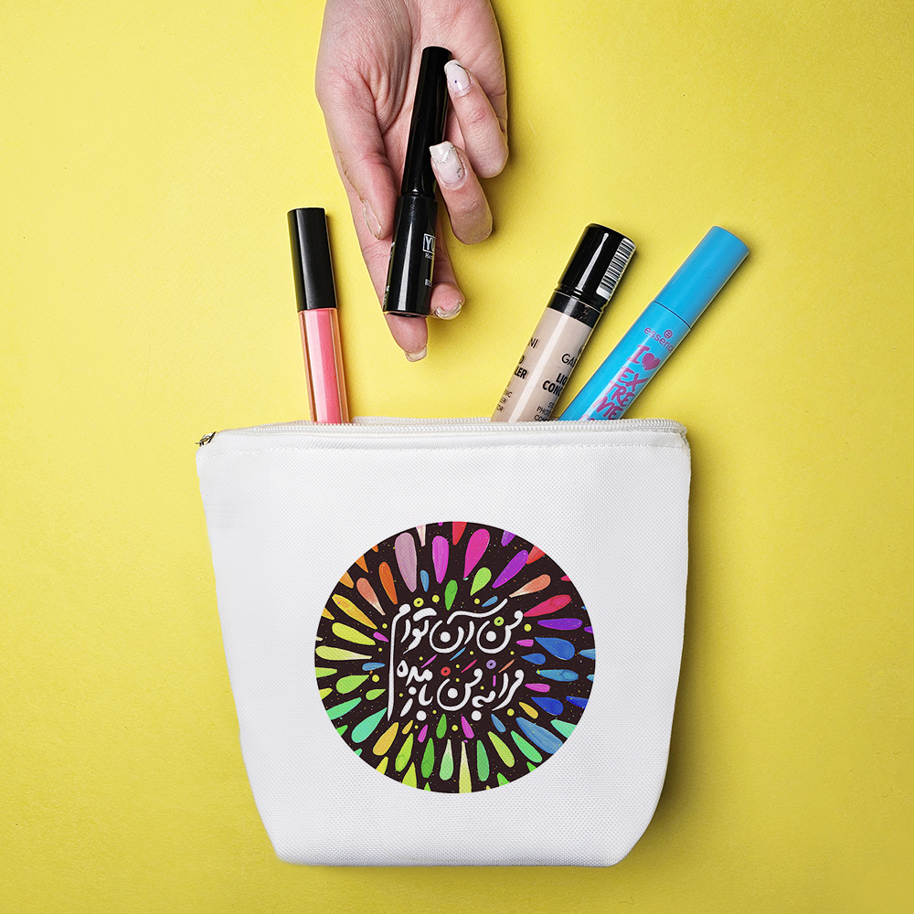 زیبایی در کنار کارایی، می‌تواند بهترین همراه برای وسایل روزمره باشد. در طراحی کیف لوازم آرایش خندالو طرح من آن توام مرا به من باز مده این اصل در نظر گرفته شده تا محصولی شیک، کاربردی و بادوام در اختیار شما باشد. این کیف‌ها از پارچه‌ی هازان مقاوم ساخته شده‌اند که علاوه بر ظاهر زیبا، استحکام بالایی نیز دارد. ابعاد کیف لوازم آرایش خندالو طرح من آن توام مرا به من باز مده ۲۲×۱۶ سانتی‌متر است و طراحی کف پاکتی ۸ سانتی‌متری آن، باعث می‌شود فضای بیشتری برای وسایل خود داشته باشید و فرم کیف بهتر حفظ شود. برای افزایش دوام و استحکام، داخل آن آسترکشی شده است. چاپ روی کیف به‌صورت دیجیتال و باکیفیت بالا انجام شده که باعث دوام و ماندگاری طرح‌ها می‌شود. این محصول کاملاً قابل شستشو است و می‌توانید بدون نگرانی از تغییر رنگ یا آسیب‌دیدگی، آن را هم با دست و هم با ماشین لباسشویی بشویید. یکی دیگر از ویژگی‌های کیف لوازم آرایش خندالو طرح من آن توام مرا به من باز مده، بسته‌بندی شیک و زیبا آن است که آن را به گزینه‌ای ایده‌آل برای هدیه دادن تبدیل می‌کند. این کیف نه‌تنها برای نگهداری لوازم آرایشی و بهداشتی، بلکه برای سایر وسایل ضروری نیز مناسب است. محصولی که در کنار کاربردی بودن، به سبک زندگی شما زیبایی و نظم می‌بخشد. کیف لوازم آرایش خندالو، همراهی زیبا و ماندگار برای شما!