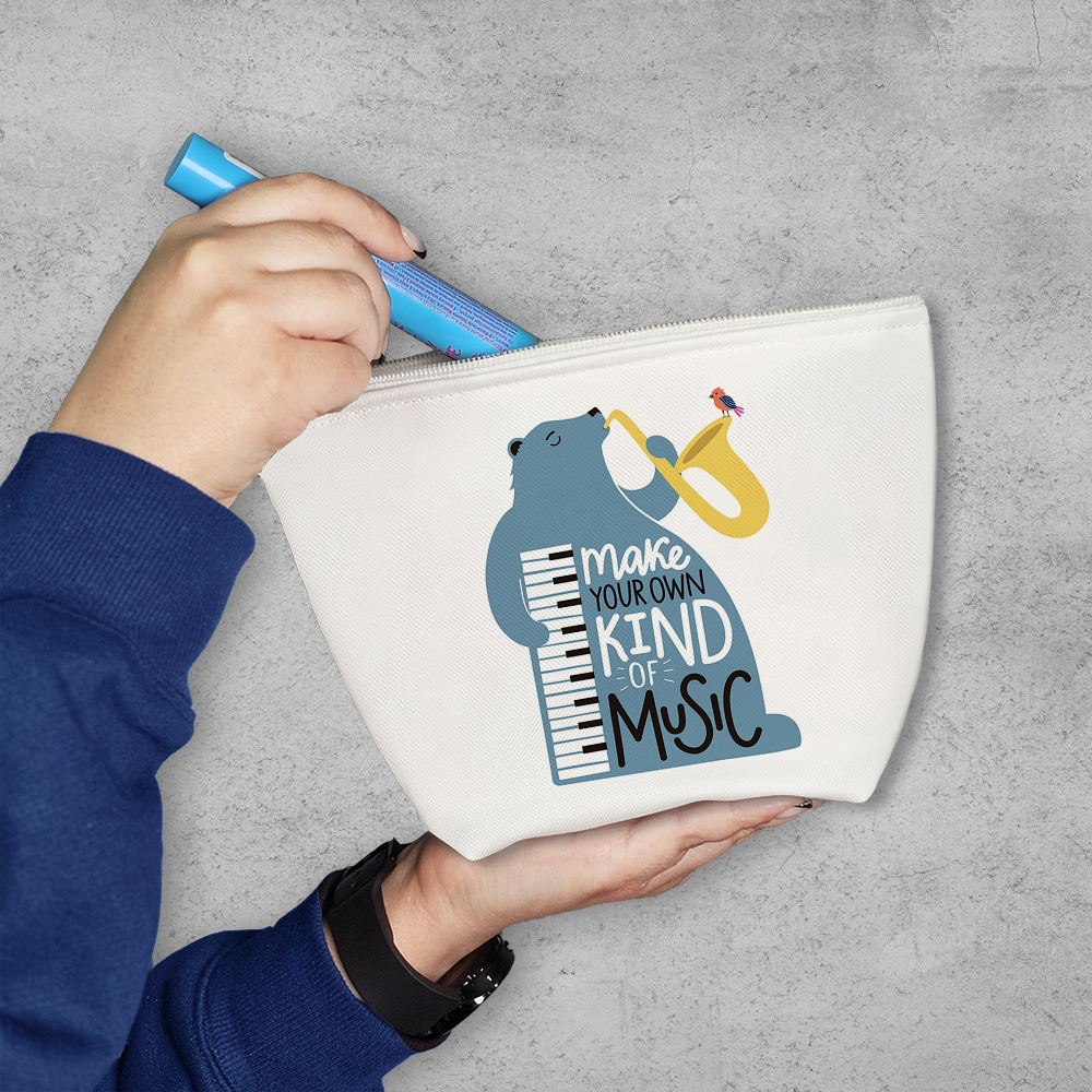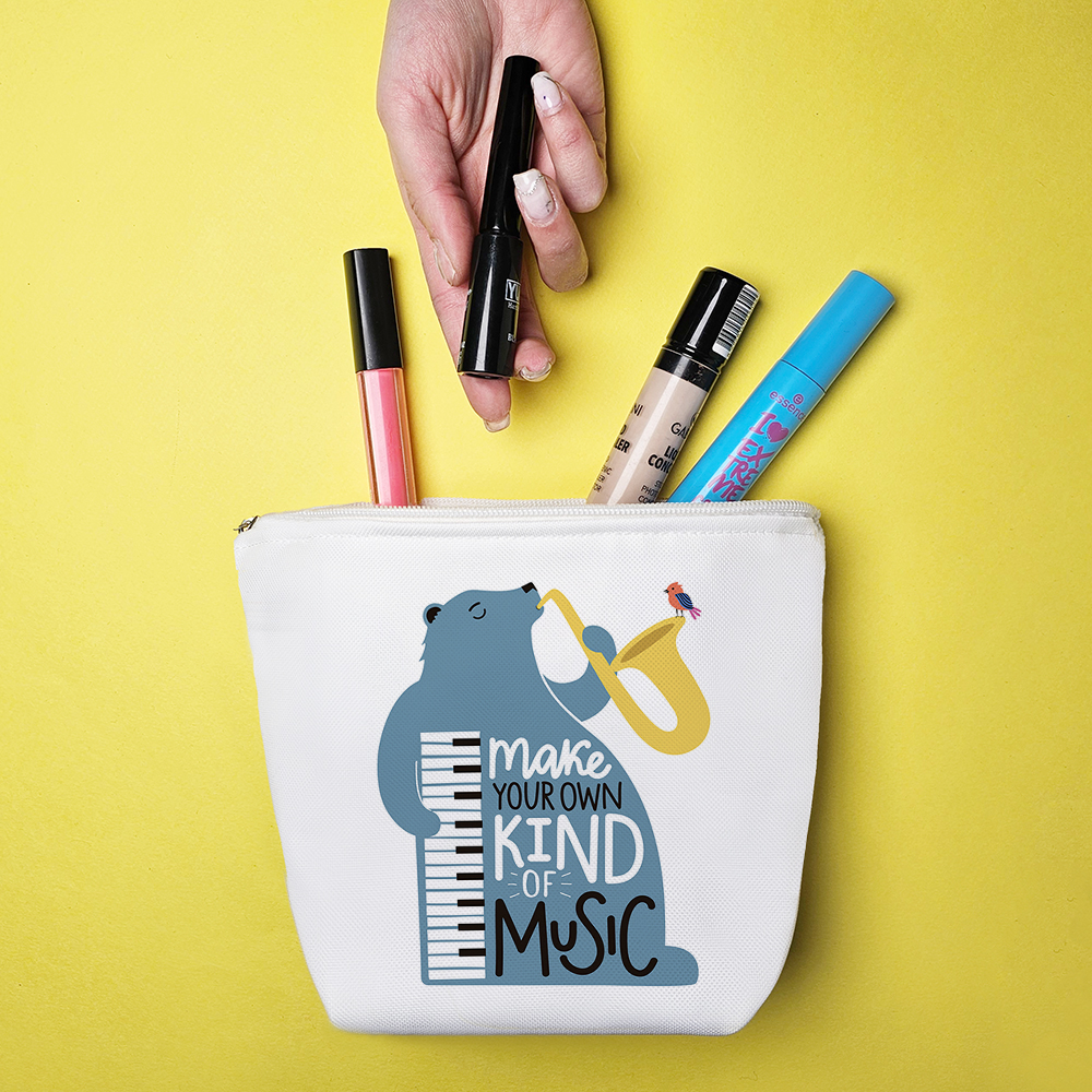 زیبایی در کنار کارایی، می‌تواند بهترین همراه برای وسایل روزمره باشد. در طراحی کیف لوازم آرایش خندالو طرح موسیقی این اصل در نظر گرفته شده تا محصولی شیک، کاربردی و بادوام در اختیار شما باشد. این کیف‌ها از پارچه‌ی هازان مقاوم ساخته شده‌اند که علاوه بر ظاهر زیبا، استحکام بالایی نیز دارد. ابعاد کیف لوازم آرایش خندالو طرح موسیقی ۲۲×۱۶ سانتی‌متر است و طراحی کف پاکتی ۸ سانتی‌متری آن، باعث می‌شود فضای بیشتری برای وسایل خود داشته باشید و فرم کیف بهتر حفظ شود. برای افزایش دوام و استحکام، داخل آن آسترکشی شده است. چاپ روی کیف به‌صورت دیجیتال و باکیفیت بالا انجام شده که باعث دوام و ماندگاری طرح‌ها می‌شود. این محصول کاملاً قابل شستشو است و می‌توانید بدون نگرانی از تغییر رنگ یا آسیب‌دیدگی، آن را هم با دست و هم با ماشین لباسشویی بشویید. یکی دیگر از ویژگی‌های کیف لوازم آرایش خندالو طرح موسیقی، بسته‌بندی شیک و زیبا آن است که آن را به گزینه‌ای ایده‌آل برای هدیه دادن تبدیل می‌کند. این کیف نه‌تنها برای نگهداری لوازم آرایشی و بهداشتی، بلکه برای سایر وسایل ضروری نیز مناسب است. محصولی که در کنار کاربردی بودن، به سبک زندگی شما زیبایی و نظم می‌بخشد. کیف لوازم آرایش خندالو، همراهی زیبا و ماندگار برای شما!