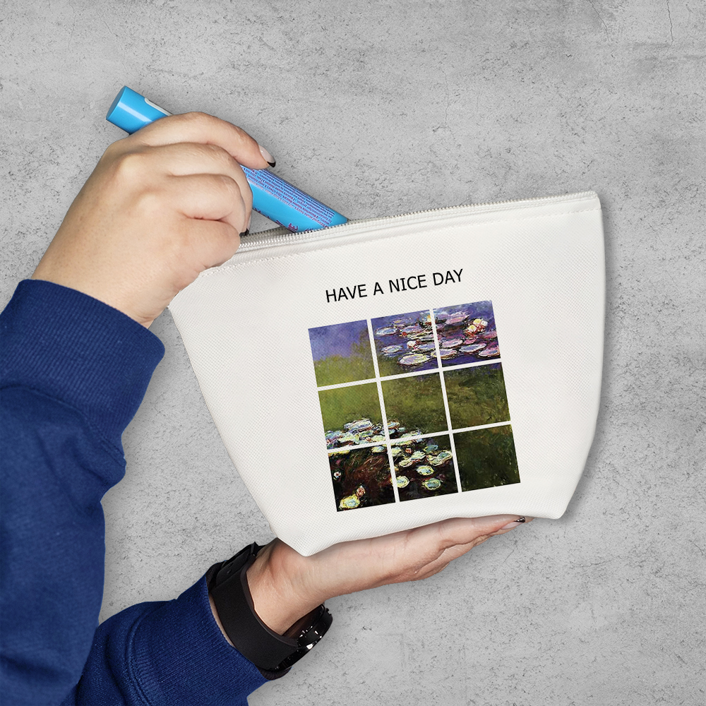 زیبایی در کنار کارایی، میتواند بهترین همراه برای وسایل روزمره باشد. در طراحی کیف لوازم آرایش خندالو طرح نقاشی کلود مونه این اصل در نظر گرفته شده تا محصولی شیک، کاربردی و بادوام در اختیار شما باشد. این کیفها از پارچهی هازان مقاوم ساخته شدهاند که علاوه بر ظاهر زیبا، استحکام بالایی نیز دارد. ابعاد کیف لوازم آرایش خندالو طرح نقاشی کلود مونه ۲۲×۱۶ سانتیمتر است و طراحی کف پاکتی ۸ سانتیمتری آن، باعث میشود فضای بیشتری برای وسایل خود داشته باشید و فرم کیف بهتر حفظ شود. برای افزایش دوام و استحکام، داخل آن آسترکشی شده است. چاپ روی کیف بهصورت دیجیتال و باکیفیت بالا انجام شده که باعث دوام و ماندگاری طرحها میشود. این محصول کاملاً قابل شستشو است و میتوانید بدون نگرانی از تغییر رنگ یا آسیبدیدگی، آن را هم با دست و هم با ماشین لباسشویی بشویید. یکی دیگر از ویژگیهای کیف لوازم آرایش خندالو طرح نقاشی کلود مونه، بستهبندی شیک و زیبا آن است که آن را به گزینهای ایدهآل برای هدیه دادن تبدیل میکند. این کیف نهتنها برای نگهداری لوازم آرایشی و بهداشتی، بلکه برای سایر وسایل ضروری نیز مناسب است. محصولی که در کنار کاربردی بودن، به سبک زندگی شما زیبایی و نظم میبخشد. کیف لوازم آرایش خندالو، همراهی زیبا و ماندگار برای شما!