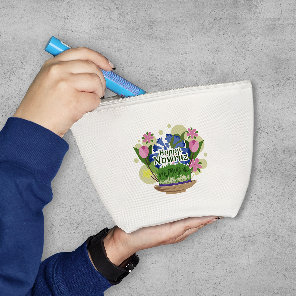 زیبایی در کنار کارایی، می‌تواند بهترین همراه برای وسایل روزمره باشد. در طراحی کیف لوازم آرایش خندالو طرح نوروز مبارک این اصل در نظر گرفته شده تا محصولی شیک، کاربردی و بادوام در اختیار شما باشد. این کیف‌ها از پارچه‌ی هازان مقاوم ساخته شده‌اند که علاوه بر ظاهر زیبا، استحکام بالایی نیز دارد. ابعاد کیف لوازم آرایش خندالو طرح نوروز مبارک ۲۲×۱۶ سانتی‌متر است و طراحی کف پاکتی ۸ سانتی‌متری آن، باعث می‌شود فضای بیشتری برای وسایل خود داشته باشید و فرم کیف بهتر حفظ شود. برای افزایش دوام و استحکام، داخل آن آسترکشی شده است. چاپ روی کیف به‌صورت دیجیتال و باکیفیت بالا انجام شده که باعث دوام و ماندگاری طرح‌ها می‌شود. این محصول کاملاً قابل شستشو است و می‌توانید بدون نگرانی از تغییر رنگ یا آسیب‌دیدگی، آن را هم با دست و هم با ماشین لباسشویی بشویید. یکی دیگر از ویژگی‌های کیف لوازم آرایش خندالو طرح نوروز مبارک، بسته‌بندی شیک و زیبا آن است که آن را به گزینه‌ای ایده‌آل برای هدیه دادن تبدیل می‌کند. این کیف نه‌تنها برای نگهداری لوازم آرایشی و بهداشتی، بلکه برای سایر وسایل ضروری نیز مناسب است. محصولی که در کنار کاربردی بودن، به سبک زندگی شما زیبایی و نظم می‌بخشد. کیف لوازم آرایش خندالو، همراهی زیبا و ماندگار برای شما!